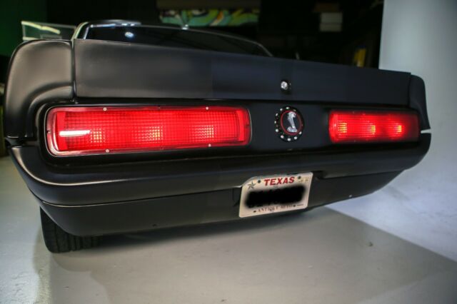 Exterior: New Eleanor Shelby GT500 body kit including; front upper and lower fascia, billet grills, fog lights, hood, fender flares, side skirts, lower scoops, trunk, spoiler and taillight panel. Car was stripped, prepped, sealed and painted multiple coats of Hot Rod Flat Black. Nothing to hide with primer, there are a couple of very minor blemishes. We think it adds to the authentic look. The car has great driver quality paint and shows extremely well! NEW; 1967 Shelby taillights, headlights, LED turn signals, aluminium Shelby Cobra gas cap, door handles, locks, mirrors, chrome trim, rubber and period correct 1967 Shelby GT500 fender badges. Car is satin black with gloss black Shelby stripes and side stripes. Be prepared for people to stop and ask about this car everywhere you go!