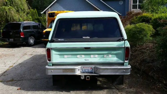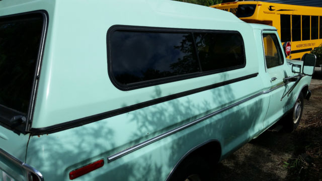 Revision: fiberglass top was bought from Hardcastle's truck tops on 03/13/1998for $1097.00 It has a charcoal grey carpet headliner and still looks great also has vented sliders on both sides with a screen. Truck was bought new from Curt Carter Ford and put into service on 10/10/1979. The Ford color is Jade Green I Have all receipts since the beginning and the original Ford shop service manual.