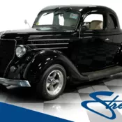 With its thorough array of mechanical upgrades paired with an outstanding, well-crafted appearance, this 1937 Ford 5-Window Coupe is one exceptionally slick-looking, great-driving street rod. This is a classic that would be an absolute "must have" for many based on its curb appeal alone and yet its accompanying exemplary street manners and dependable power make it a joy to drive as well. This Coupe has all the vintage magnetism you'd look for in a car of... its niche and its Pearl White exterior is a nice departure from the norm. The paint presents exceedingly well - it's got a glass like finish and nearly radiates when exposed to the sun. From that distinctive angular grille bracketed by custom headlights back to the teardrop-shaped taillight casings, the collection of chrome on board here is in great form. Its largely steel body makes it well-positioned to hold up to many miles of use and the passing of time, and it pairs with a fiberglass hood and fenders that lighten the load just a bit, adding to an already favorable power to weight ratio. This Coupe sits fairly low to the ground for a tastefully aggressive appearance and just the right amount of wheel offset has been dialed into the mix, so you won't find the rubber surrounding the show-stopping custom wheels scraping on the fender wells. You'd have to do quite a bit of searching to find a custom interior that's got anywhere near the visual impact of this one. It's not just striking but also functional and very comfortable. There's a pair of late model leather bucket seats in place up front with 6-way adjustability that sit over an expanse of well-fitted crème-colored Berber carpet and the custom headliner above ties in perfectly with the two-tone door panels to each side. The dash area just beyond the plushly wrapped steering wheel perched on its chrome tilt column is a showstopper. There's a full complement of parchment-faced Classic Instrument gauges recessed inside to monitor motoring functions, and an underdash climate control system has been added to keep things cool during these summer months. Raise the sloping deck lid and you'll see that the rear storage area is just as well crafted as the rest of the interior, and is surrounded by fabric lined walls and a carpeted floor, with a pass-through door to access the passenger compartment. The 350 cubic inch V8 standing by under the hood wears a Holley 4-barrel carb over its aluminum intake manifold, and an added mild performance cam provides some extra muscle without wreaking havoc on available vacuum. It pairs with a freshly rebuilt and well-fortified 4-speed automatic 700r4 transmission with an overdrive gear to keep the revs low at highway speeds - just imagine the looks you'll get behind the wheel of this attention magnet. A sizable aluminum radiator pairs with an electric fan to keep running temps in check and the road manners on this vintage Ford are outstanding. It rides on a Mustang II front suspension that brings with it power rack and pinion steering, coilovers and power disc brakes that join the additional pair in back for outstanding stopping ability and in back you'll find a 4-link suspension with coilovers of its own to make for a smooth, refined ride. This exceptionally well configured classic rolls on a set of 17" Boyd Coddington wheels that provide a great finishing touch. This 1937 Ford 5-Window Coupe features off the meter visual impact and its well-appointed interior and vibrant, dependable power really put it in select company. Call today!