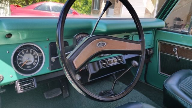 Team Falconwagon62 finds some of the nicest cars and trucks, I found this one in 2012 at Shades of the past, it was nice, but brother Jim has wend OVER the top in detailing and repairing this GREAT American Icon 4x4, these are great trucks, but many rusted away due to abuse, and off road use in snowy weather....This truck was bought NEW in Dalton Georgia and was there or Alabama all of it life till we got it, and brought it home...Has a GREAT running 302 V8 with a 4 barrel Carb, Jim did install an electric choke 600 cfm Holley carb, and is tuned in, runs as near to new as it can, is a Factory Power Steering, Power Brake and AC car, Jim has spent $500 in upgrades to the AC System, New Hoses, Receiver-Dryer and had the compressor oil changed to PAG oil, and all R134A fittings, just needs vacuumed down and filled with R134A, less than $75 at most repair shops, also the Automatic transmission pan gasket started leaking (not bad) over the winter, we have a new gasket for it, again, not a big deal, Transmission shifts smooth and no issues, Brakes are firm and again, NO issues....Glass is all good, windows all work as the should, New Wheels were added, tires are in 75% or better shape, show no unusual wear, steering nice and tight, all Poly bushings added when we added the RARE front sway bar, also has a 3:50:1 Locker Rear end, also has RARE factory lower rocker moulding, Has dual exhaust flowing through those Smithy's Mufflers and has a very mellow tone, no Flow Master noise here. Floors are rock solid, as is the frame, New Shocks installed a few years ago, Dash lights work when they want, I was going to replace switch, I am sure as this sits more than driven, is not helping, so that's why it's time to sell her......out of a 10, this baby is a strong 8, 8-1/2.....overall a great truck, UNMOLESTED and NOT HACKED up over priced junk..... a true Show winning Ford, has won every time we have showed it.Have all the documentation from new, manuals, and the Warranty Card and all...even the dealers Key Ring......Ask question PRIOR to bidding, Mileage will go up, is driven on nice weekends, NEVER has seed rain in over 4 year, Clear OHIO title, and is tagged and insured, Call if you want to inspect in person, brother Jim works 2nds so Call me 513-312-8799, you could fly in and drive home, or, as in the past, we will meet you, or your shippers requirements, I have EIN so if sold out of the country, I have shipping experience, ALL SHIPPING details to be arranged by YOU, and YOU pay all costs....Clear title will be sent AFTER I have funds CLEAR and in my hand, and car will NOT LEAVE my site until then, NO FEEDBACK Bidders MUST CALL me, as to many scams on ebay as of late, buyer pays a NON-REFUNDABLE deposit of $500 at Auctions end, and balance within 7 days, so have all of your ducks in a row, if bidding.....Still have questions, CALL 513-312-8799.....Thanks for looking and GOOD LUCK....
