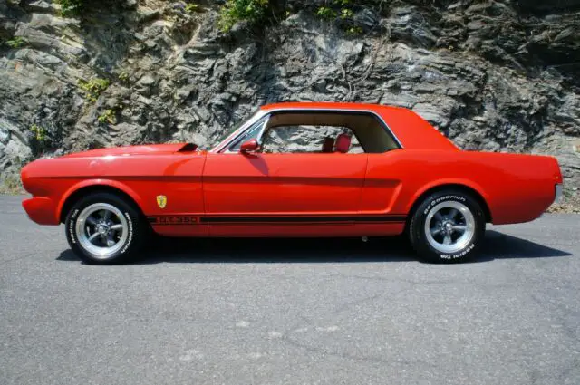Absolutely exciting GT 350 Tribute Coupe . Hot Rangoon Red / Matte Black Super Snake Stripes with Yellow Cobra Badges . Red and White Pony interior . Rebuilt Hi Performance 289 V8 with 302 Windsor Roller Rockers Heads along with Lunati Ca, Hi Rise Intak, 600 cfm double pumper Holley Carbureto, Header, Flow master mufflers and GT trumpet tailpipes . Aluminum Radiator and Flex Fan . Top loader 4 speed Transmission /Hi Performance Clutch with Scatter shield Bell Housing / 3:90 Rear Posi . Upgraded Steering Rack . Shelby GT 350 suspension package . Sway Bars Front and Rear . Front Air springs set up with compressor in the trunk . Front Disc Brakes . All new Painless wiring system with Halogen Headlights and Rear LED Taillights. Digital Dakota dash Gauges and Speedometer and Tachometer . Vintage Air Conditioning system . Am Fm / Cassette and 4 way speakers . Tilt Steering Wheel / Shelby Cobra Steering whee, GT 350 Gas Cap .Electric Remote Door openers .Shelby Signatures ! So much here !! WOW !