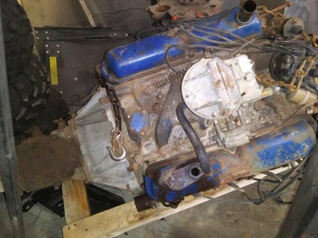I have both new fenders drivers side is off, hood is new, i have both doors. Comes with v8 289 and 3 speed trany, believe to be original to car.