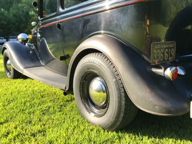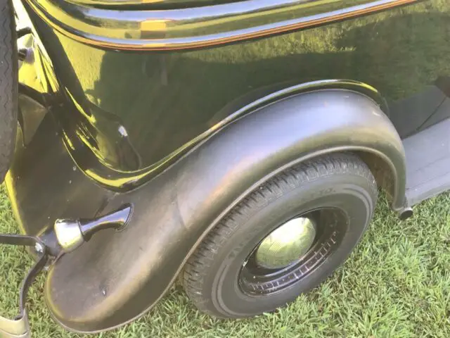 It still wears it’s original paint and all I have done was wash it, it would shine like crazy with a buffing but the paint on the fenders is a little light and would probably buff through. There is no rust through on the car anywhere, just expected minor surface rust underneath. There’s a small dent in the passenger door. The interior is all original material and even sports the back glass shade. The gauge cluster was changed out but I still have the factory gauges. The 4 cylinder was replaced with a Flathead sporting Edelbrock heads and intake with two 97’s, a mild cam, headers, and newer spark and alternator backed by a 39 Ford transmission and juice brakes on all four corners. The wires where replaced with 15” steel wheels and radials. The gas tank was replaced. The car runs and drives great, I’ve put several miles on it since I bought it. If you know anything about these cars you know how rare a 33 B model sporting original paint and interior is. I want a car I can get in and drive across county and I can’t afford to leave this car sitting all the time nor would I ever “build” it into something more modern therefore I’m hoping someone will appreciate this car for what it is and baby it the rest of its life.