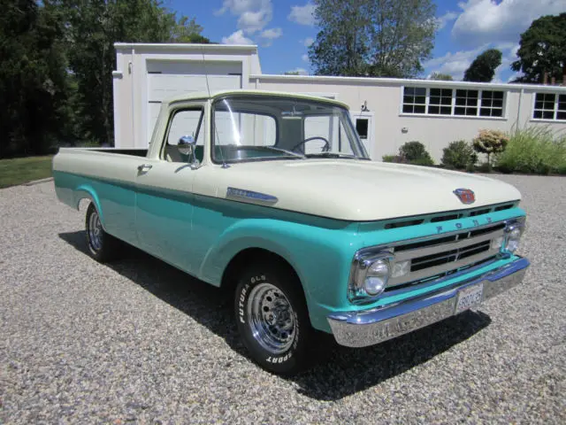 These trucks are getting rarer by the day. This one is a rust free, no patches or filler, example of a Ford Uni-body. The underside of the truck is also perfect and looks as good as the rest of the truck. It has its original 292 V8 with four speed transmission. The paint is near perfect and shows like new. It has a rare long bed with no rust or rot ever. It spent almost all of its life in California. You can drive this truck as is and tinker with it as you go. It gets thumbs up from everyone who sees it. It runs and drives as it should and can be driven home. These trucks were made for a three year period only and are becoming increasingly hard to find with a rust free body like this one. Don't miss the chance to own and drive a very rare and very cool piece of automobile history. Also included,optional rear bumper, steel wheels and hubcaps. For additional information, please contact Rick at 860-227-2487.