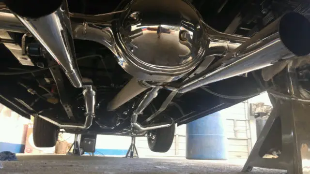 UNDERCARRIAGE: HAS A STOCK 9" REAR END (CHROMED), FRONT STRAIGHT AXLE (CHROMED), LEAF SPRINGS, MUFFLERS AND ALL BREAK SPRINGS, ALL ARE CHROMED. ALL TIRES AND WHEELS ARE NEW.