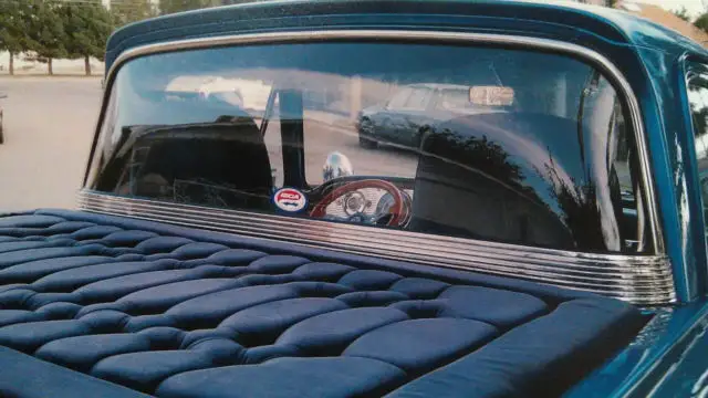 INTERIOR: HAS BLUE VALUER BUCKET SEATS, TILT STEERING COLUMN, HEATER WORKS GREAT AND STEREO. BREAK AND CLUTCH PEDALS ARE CHROME. BED INTERIOR IS ALSO BLUE VALUER.