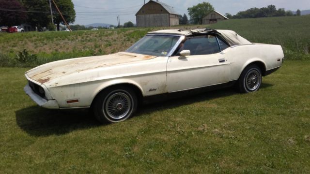 1972 Ford Mustang convertible, V8 automati, front disc brake, Factory AC . Doors and hood are usable. Car does not run. Car does roll. Car had been in indoor storage past 20 years. Door panels are cracke, Dash is cracked, windshield is cracked floors are Rusty. Typical rust around the rear wheels. Pretty much a complete car.------- please note car does not have titl, will be sold with bill of sale only.----- please,only bid if you have an eBay history and have the ability to make Paypal payment. $200 paypall deposit due at end of auction. balance in cash on pick up within 30 days.Any questions call or text 610-349-0048. Car is located about an hour north of Philadelphia.