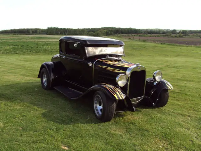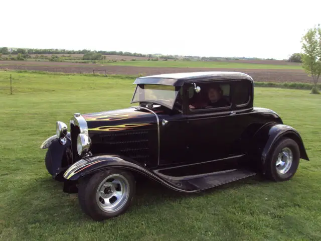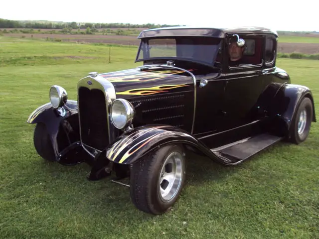 Up for sale is a Ford Model A COUPE COMPLETELY GONE OVER, STARTING WITH A NEW HIEGHTS FULLY BOXED FRAME EQUIPED WITH INDEPENDENT WISHBONE FRONT END DISC BRAKES AND COIL OVER SHOKES AND FORD 8 INCH REAR.Complete overhaul on a flathead ford and C-4 tranny.this car is a all steel car with a real title except for fenders all new custom interior new glass chopped roof the list goes on and on.I have over 25000 in receipts for this that don't include labor or cost of the car before the build check out my pics and good luck bidding.PS I have a very low reserve on this car