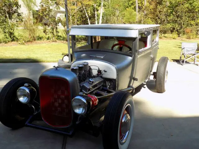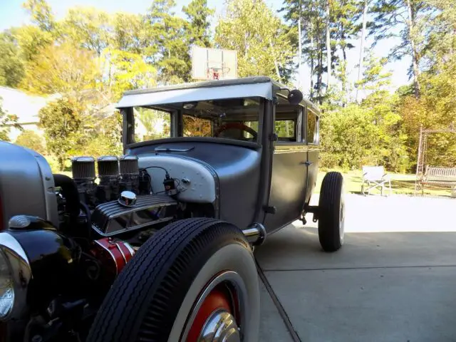 THIS AUCTION IS FOR A COOL 1927 T-MODEL SETTING ON A 1928 A-MODEL <> KUSTOM HOT ROD /RAT ROD THAT IS A GREAT DRIVER <>STARTS RIGHT UP WITH A 350 SBC MATED TO A 350 AUTOMATIC WITH A LOKAR LONG BAR SHIFTIER <> ELECTRIC FAN (RUNS COOL ) <> ELECTRIC FUEL PUMP <> NEW WIDE WHITES <> NEW CHROME HEADERS WITH THE DUMP AND NEW 2" EXHAUST THAT EXIT OUT THE REAR WITH NEW CHROME TIPS <> INTERIOR HAS BEEN FINISHED IN A ROLL PLEATED VINYL BUCKET SEATS ALONG WITH MATCHING DOOR PANELS <> KUSTOM TOOL BOX'S BEHIND FRONT SEATS <> THE TOP IS A HARD LIFT OFF HELD ON WITH FOUR BOLTS <> TOP HAS BEEN WRAPPED IN THE SAME MATERIAL AS INTERIOR AND I FABRICATED A COOL TENTED SUNROOF IN THE TOP.<> NEW WIDE WHITES WITH ORIGINAL FORD BABY MOONS AND BEAUTY RINGS