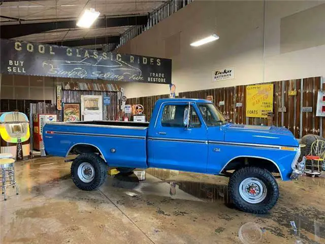 Cool Classic Rides, Dealer #DA8690 is excited to offer another classic with this 1975 Ford F250 Ranger 4x4 Highboy. Now this is a great truck. If you want a truck that is nicer than your everyday work truck, this Highboy could be the truck for you. With a 360 V8, four speed transmission, it runs and drives excellent. Options like Highboy suspension and a divorce transfer case are found with this style of Ford Ranger. You’ll be cruising down the road in style. The body is in excellent condition, with no rust found. A fresh coat of factory original color, Grabber Blue is an awesome color and really makes this truck pop. Grabber Blue was a very rare, factory color. It even has dual, saddle bag gas tanks (need to be serviced) and a chrome gas cover. This truck also has a spray in bed liner for added protection against the elements and whatever you decide to throw in back. Inside, we have put in a new headliner and newly reupholstered bench seat. Need a gun rack? This Highboy has one. This is a very clean, very nice truck in fantastic condition. It is hard to believe that this is almost a forty-five-year-old truck. We purchased this F250 from the second owner. It is a very low mileage, original truck. The day we bought it, we drove it 85 miles back to our shop, with no problems at all, we just cruised. Highboys are very popular and are getting hard to find in this great of condition, so this one is special. Make sure you act fast because this ride won’t last! We always recommend a professional inspection, or a private viewing before any purchase. We do not sell show cars, we sell nice daily drivers, made to get out on the open road. All of our descriptions are the personal opinions of Cool Classic Rides. Note that the mileage listed is considered either over mechanical limits or exempt status not actual mileage unless otherwise noted. We love cars, it’s what we do, So let’s talk. Call Kelly at 503-468-3593. You can also see this car and our entire inventory on our YOUTUBE CHANNEL, COOLCLASSICRIDES, AND ON OUR WEBSITE . ROLL UP YOUR SLEEVES.. ROLL DOWN YOUR WINDOWS..ENJOY THE RIDE.. PEACE.