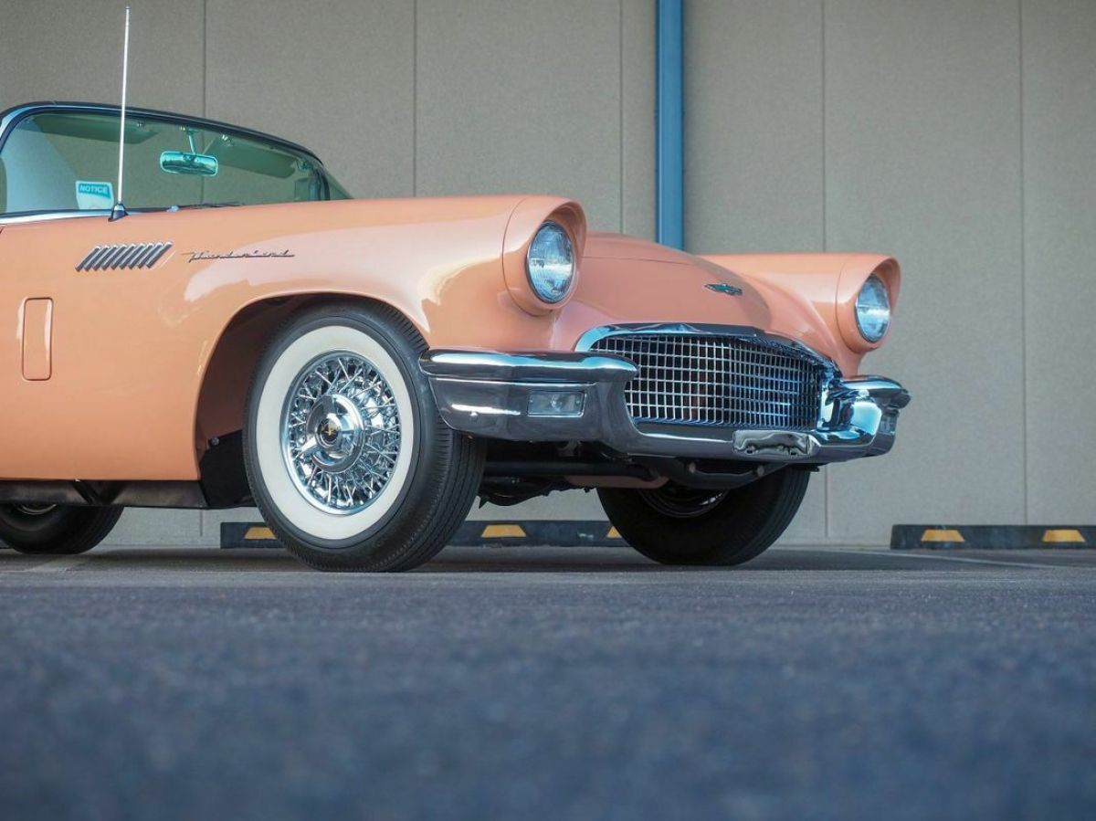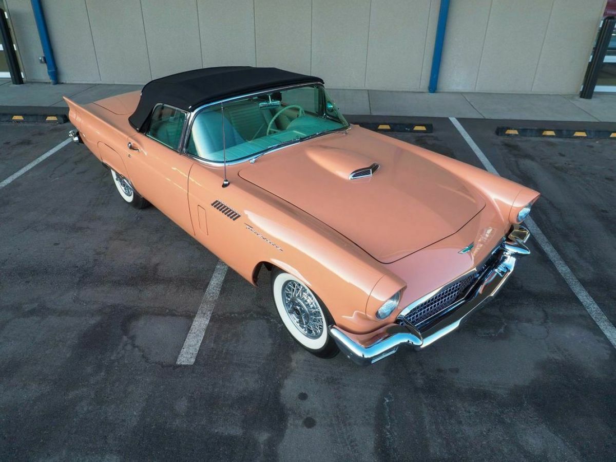 Offered by Cars Remember When is this frame-off restored 1957 Thunderbird finished in the rare Coral Sand color. This car is 100%complete and ready to go. The paint shines bright and the body is laser straight. Doors open and close nicely as well as the hood and trunk. a correct 'D' code 312 V8 engine with a Holley 4-barrel carburetor. This Thunderbird is equipped with the rare power steering and brakes options which were not common on most Thunderbirds of this era. This car is a smooth driver free of vibrations and rattles. Very easy to drive with the power steering and brakes. The interior is nicely restored and in excellent condition. The dash and gauges are absolutely gorgeous and even the clock works! Original Town and Country radio still in the dash in operating condition. The undercarriage is very clean and shows evidence of the frame-off restoration. All the suspension components are in good shape and roadworthy. Overall this is an extremely elegant Thunderbird with a beautiful color, excellent fit & finish and a car that is turn-key ready to go. CALL TODAY 720-608-5242
