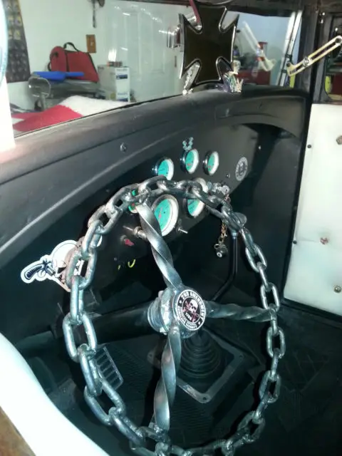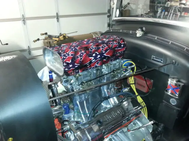 This car was a 4 year project, I completed it this year. The list is a built 350 with a Wieland tunnel ram, two 4 barrel edlebrock carbs, Holley fuel system, MSD ignition, Lokar auto shifter, new steering box, new front end, new drag link's, new pitman arm, new calipers, coil over shocks front and rear, new 4 point link, new ladder bars, new shocks, new gas tank, new dolphin gauges in dash, new bomber seats. all billet aluminum pulleys aluminum radiator with cooling fan. new tires, weld wheels on front, Cragers on rear, Paint Matte Black, new trans, new lights and horn. This list can go on forever. This Rod is in excellent working order. No air.