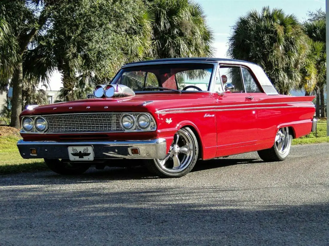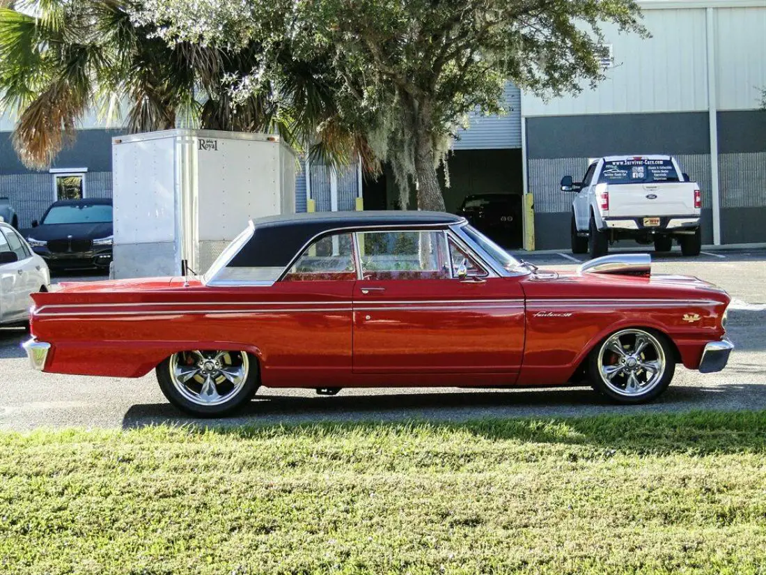 Please visit for additional photos, information and a video. This 1963 Ford Fairlane 500 2-door hardtop is a top-notch restoration! The doors, hood and trunk close with the lightest touch and the big block engine roars to life at the bump of the key. This car is built right and is a car you can immediately start winning trophies with. The exterior is painted a bright red that was professionally sprayed over an incredibly straight body. The stock hood has been professionally cut and actually goes down around the hood scoop. A prop rod holds it open so you can show off the clean engine compartment at shows. This Ford is lowered and rides on Boyd Coddington aluminum alloy wheels. The famous Thunderbolt was the inspiration for this Fairlane, but it was taken to the next level with custom touches everywhere you look. 460 badges on the fenders let onlookers know that this beast isn’t messing around! The big block Ford 460 is built with an Edelbrock intake, Holley carburetor, big tubular headers and a mild cam. An aluminum radiator keeps it all cool and aluminum valve covers and a big menacing breather make the engine the star of the show. The engine is nestled into a completely smoothed engine bay. The inner fenders and firewall are smoothed and painted the same bright red the exterior wears. A built C6 automatic transmission handles the power and provides smooth quick shifts. Adjustable ladder bars and coil-overs put the power to the ground out back. When it’s time to stop, 4-wheel disc brakes handle that job with ease. The interior is clean and simple. The dash has been smoothed with the ignition and headlight switch hidden underneath. A billet gauge cluster houses Dolphin white face gauges and an AM/FM/CD player has been added. A B&M shifter on the floor is a fun way to get through the gears while you sit on the very comfortable red vinyl bench seat. Strap in with the retractable seatbelts and turn up the A/C on those hot summer cruises. The attention to detail doesn’t stop there. Even the trunk is nicely finished with black vinyl panels surrounding the fuel cell. The wiring and lines are nicely routed so you see as little of them as possible. This is a no expense spared restoration that will make the next owner very proud to show it off. This vehicle is eligible for an extended service contract through Classic Vehicle Protection. Click the “Warranty” tab for more info. For additional information on this and our other classic and collectible cars for sale, please visit . For assistance please call the office at 855-472-2982, text our cell phones at 855-472-2982, or email us at . We are located between Tampa and Sarasota. We are 90 minutes from Orlando and Fort Myers.
