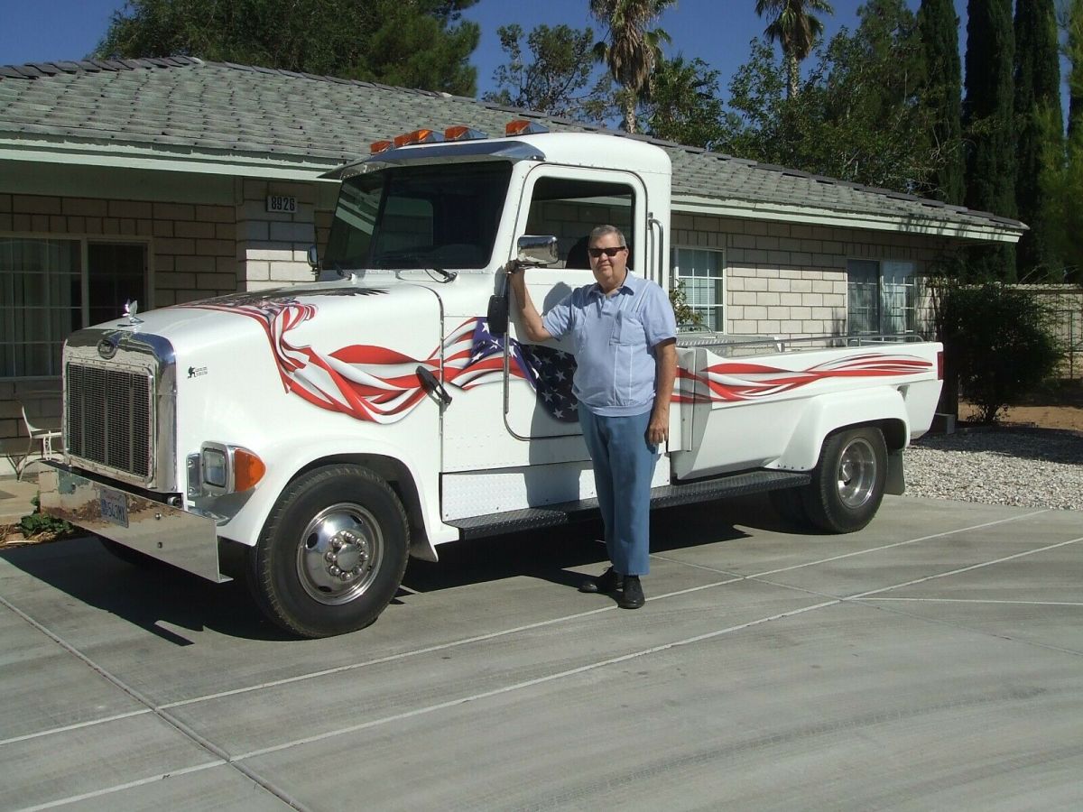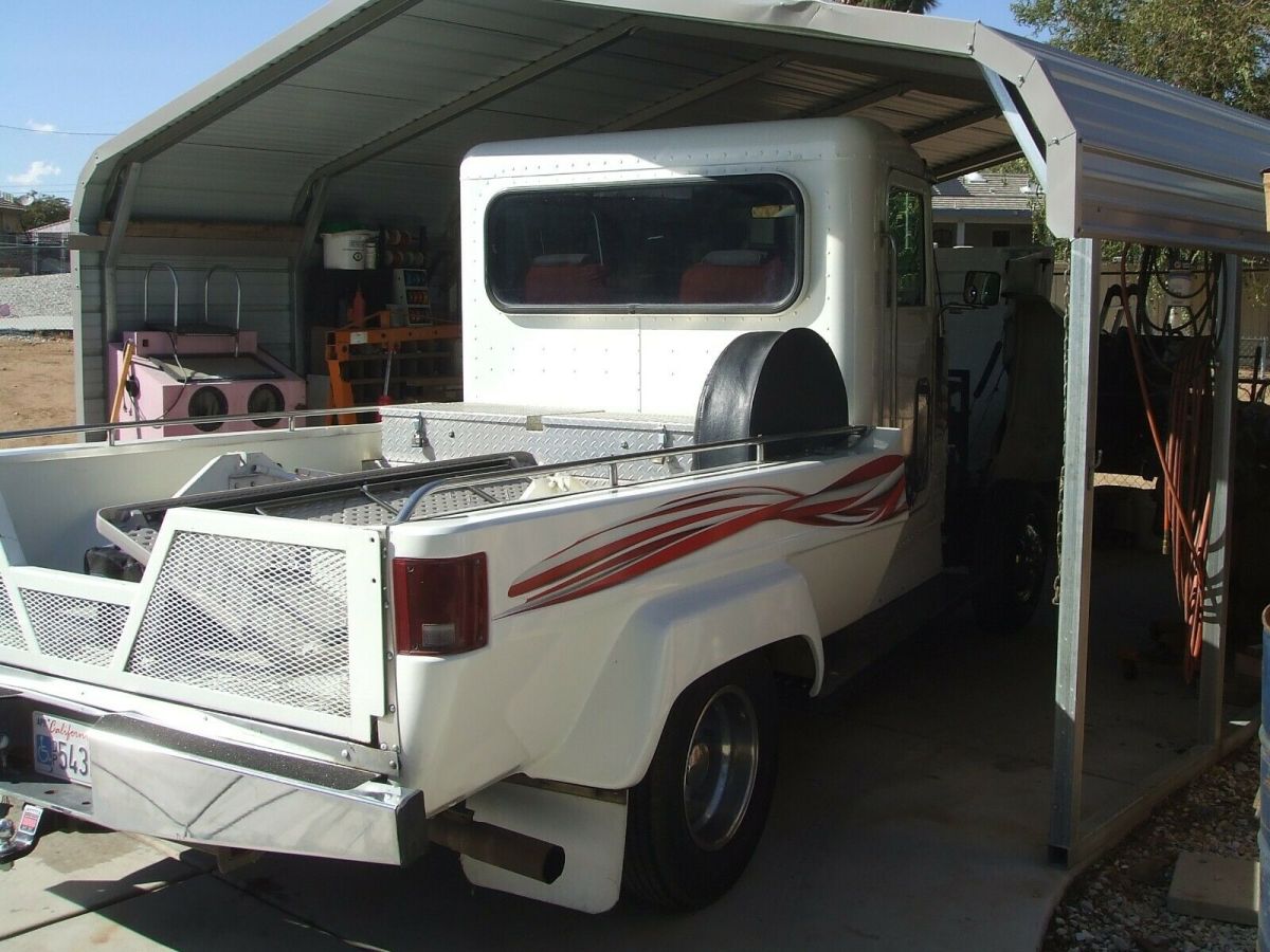 1954 Ford 1 Ton Pickup. Mustang II front 4 link rear suspension. Custom 4.5" chopped top, suicide doors, shaved door handles with remote opener. Reverse open hood, front & rear roll pans, custom interior & dash, Banjo steering wheel, tinted electric windows, it has a Pioneer sound system with a CD player.The color is called Vanilla even though the picture shows it being more white in color, the interior is blue speckle with off white piping. Vinteak hub caps & beauty rings, lift cover on the bed (the tailgate is molded closed).The motor is a 307 Chevy 30 over, 3 speed automatic transmission, rear end is out of a 1976 El Camino. It has a brand new battery, the mileage on this motor is (7,142) the A/C is installed but needs the hoses hooded up. There are way too many extras to list so any questions just ask.She really is a Beauty, Thanks for Looking & Good Luck!!!