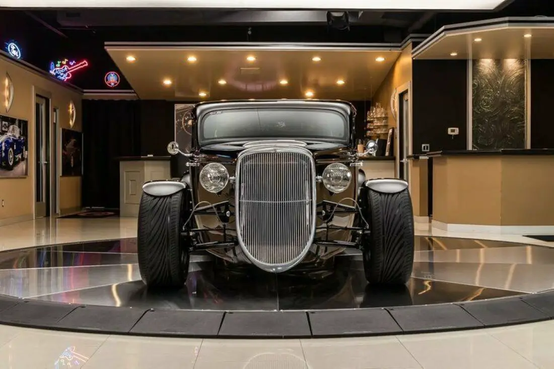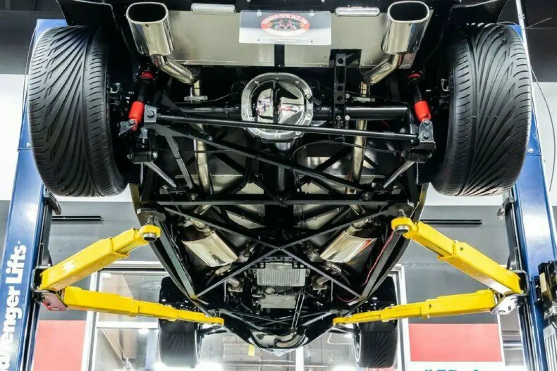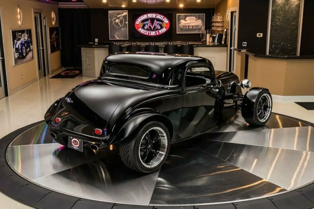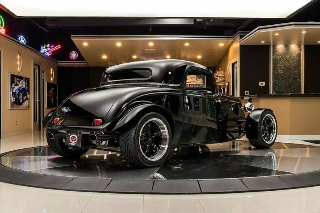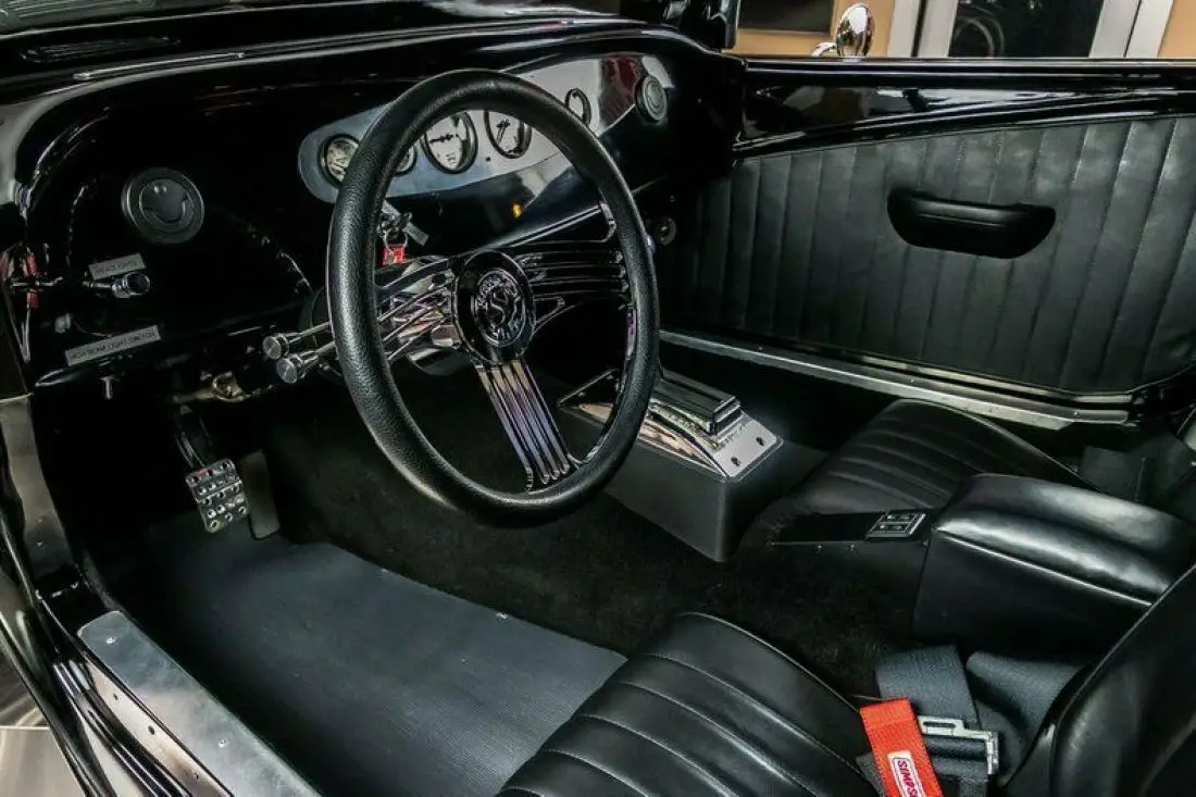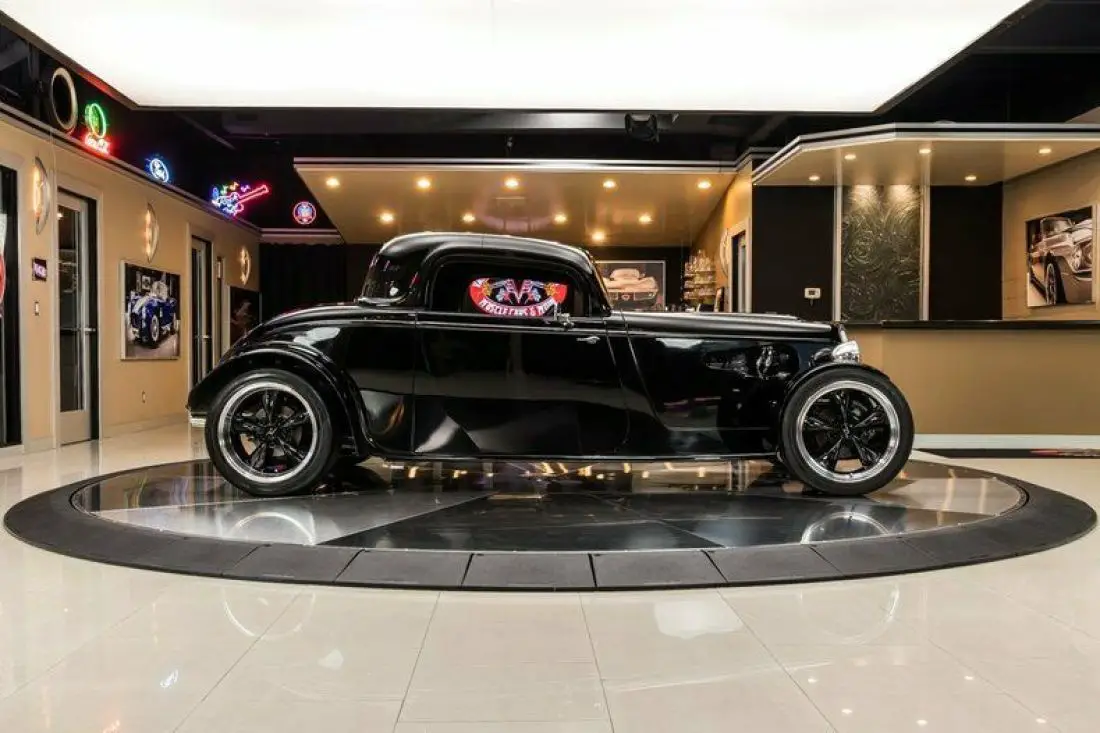 The interior of this '33 Ford is gorgeous and it's in pristine condition! Take a look inside to see this Ford sporting Bucket Seating, Simpson 4-Point Harnesses, Black Vinyl Upholstery throughout, Black Carpeting, Power Windows, Tilt Steering Column, Chrome Steering wheel, beautiful Dashboard with AutoMeter Gauges, B&M Shifter, Armrest, along with plenty of room in the Carpeted Trunk for all of your car show essentials! The underside of this hot rod is absolutely beautiful like the rest of the car! Take a look underneath to see the nice condition of the Chassis, Floors, Rear End, Driveshaft, 4L60E Transmission, Engine Oil Pan, Steering Components, Adjustable Independent Front Suspension with Coilovers, Coilover Rear Suspension with an Adjustable Panhard Bar, BBK Shorty Exhaust Headers, along with the Stainless Steel Dual Exhaust System that rumbles beautifully!