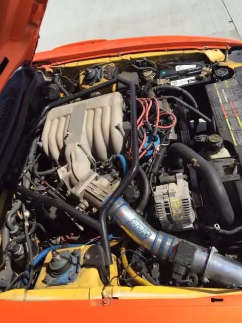 - it has upgraded heads and camshaft, full exhaust, cold air intake (filter in the fender), a cobra intake manifold, bbk throttle body.