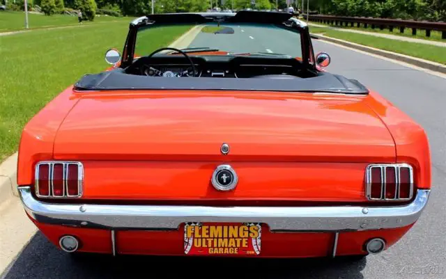 No expense spared photo documented rotisserie restoration, rebuilt matching #s original 200cid 6cyl ( great fuel economy ) smooth shifting rebuilt manual transmission, mirror finish grabber orange paint, all new black bucket seat interior with upgraded console, black power convertible top w/matching boot, fully restored dash & gauges, mustang 3 spoke sport steering wheel, great looking chrome & polished stainless trim, original stainless wheel covers with fresh radials,seat belts, original AM radio ( optional hidden digital sound with Ipod/SAT/FM stereo, show detailed engine and trunk compartments, great looking-investment grade original style restored Mustang Convertible, show or drive this one-great for beach cruising!