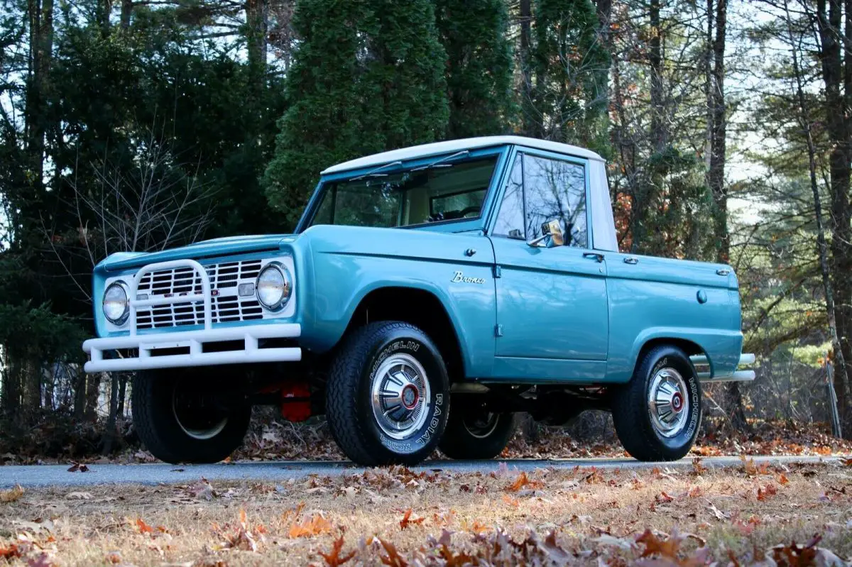 1966 Ford Bronco 4X4 powered by a 200ci 6-cyl. mated to a 3-speed manual transmission on the floor. Dressed in metallic light blue, this turn key ’66 Bronco has undergone a complete restoration. Excellent paint. Rust free, solid floors and frame. Steel half cab. Clean engine compartment with all new fuel and brake lines. All new bushings and shocks. Interior is in excellent condition, new dash pad, original gauges, electric wipers, aftermarket tach. All electrical, gauges, lights, etc. work as they should. Runs and drives excellent. This vehicle can be driven anywhere as is, needs nothing! For more information regarding this vehicle please call 339.216.0856. ***Will handle shipping anywhere in U.S.***