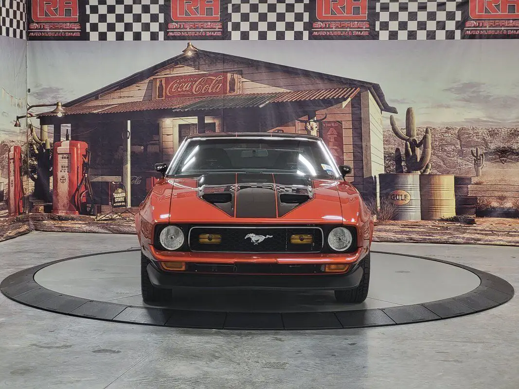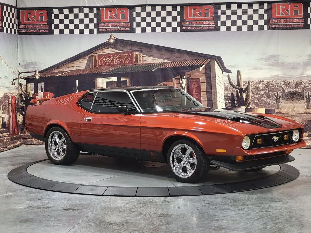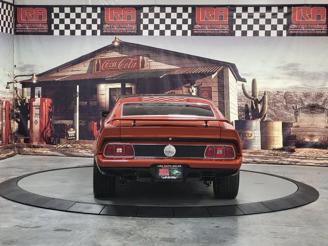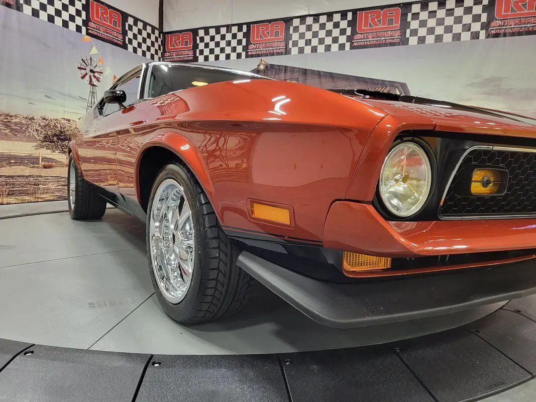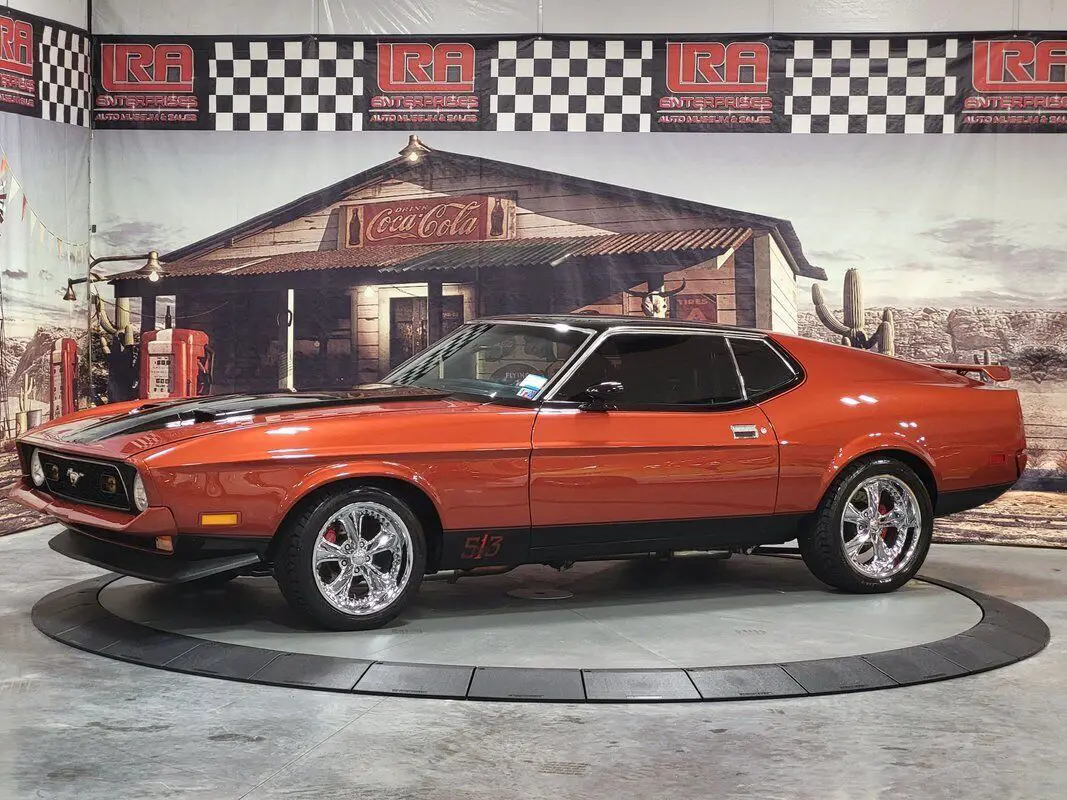 In limited supply, imagine how many of the 1971 Mustangs still roam free, and this is an excellent opportunity for you to grasp the unique style of this fantastic American Classic! Rekindle the joy of driving in our Fully Frame Off Restored 1971 Ford Mustang Mach 1 Coupe as it dominates the scene in Burnt Orange with a Black roof and black Mach stripe. a 460 punched to a 513 CID V8 that provides 650hp and an intoxicating rumble from the dual exhaust while coupled to a smooth-shifting C6 Automatic transmission with Overdrive paired to the impressive Ford 9-Inch rearend. Notice the One in the 513 on the side - the restorer left the Number 1 to preserve the natural patina from 1971 as a tribute to the car's test of time. Enjoy chrome accents and gorgeous wheels that add the perfect amount of polish, two-stage Wilwood brakes, reinforced leaf springs, and even a fresh gas tank and straps! The '70s brought in a bigger pony car with more sheet metal, a longer hood, a shorter deck, prominent crystal headlamps, the galloping horse emblem, painted bumpers, and an aggressive black chin spoiler matched to a painted decklid spoiler for that 1970s aero flair. Under the long hood, the naturally aspirated 460 Ford V8 massaged to 513 CID V8 with 4bbl carb is a showpiece with splashes of chrome, MSD ignition, updated Air Conditioning with a dual serpentine belt set up, March pulleys, electric fan, coated full-length headers with electric cutouts, H-Pipe, and rectangle exhaust tips ready to rumble. Everything we see shows that this Mach has been walked through in detail. All suspension, braking, ring/pinion, body seams, body paint, stripe paint, the clearcoat, and detailing show an incredible testament to the quality and craftsmanship of this restoration. The interior of this Ford Mustang brings back a time when cars were all about comfort, control, balance, and ride, and you will undoubtedly find all of that in this cabin. No matter your position, you will have plenty of legroom, but let's face it... Everyone wants to be in the driver's seat of this one! Black Corbeau seating with matching 5 pt. Corbeau Harness secured to the custom fit roll bar holds you in place set over new carpet over Dynomat heat and sound shielding for an impressive road feel. Simple and easy-to-read gauges, knob controls, and incredible upscale Kenwood audio with a 5-channel amplifier and high-end speakers are driven by monster cable, ready to jam the way you want to now or did in the 70s. The dash is loaded with vintage telemetry and features glossy black trim that's clean and tasteful. Everything from the door panels and headliner to the 3-spoke steering wheel and black carpet appears to be restoration-fresh between well-integrated accessory gauges and a polished shifter on a factory console. We invite you to carefully inspect our 1971 Ford Mustang, which generates enormous interest and admiration from enthusiasts! Take a moment to admire the condition of this throw-back to the time of bell-bottom jeans and maxi dresses. We have hundreds of documents detailing each nut, bolt, seal replacement, and engine and body restoration. Just ask us for detail, and we will send you the file. There's never a wrong time to buy a classic muscle car like this in excellent condition – especially when that car is a Mach1. While the 71-73 Mustang's production numbers are significant and documented, top-of-the-line ponies are hot commodities that appear to be warming up. If you're looking to buy into an emerging collector car niche, don't miss your chance to own this stellar Ford! Save this Page and Call for Availability.