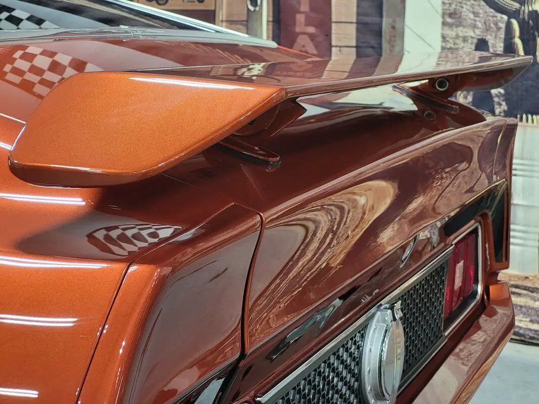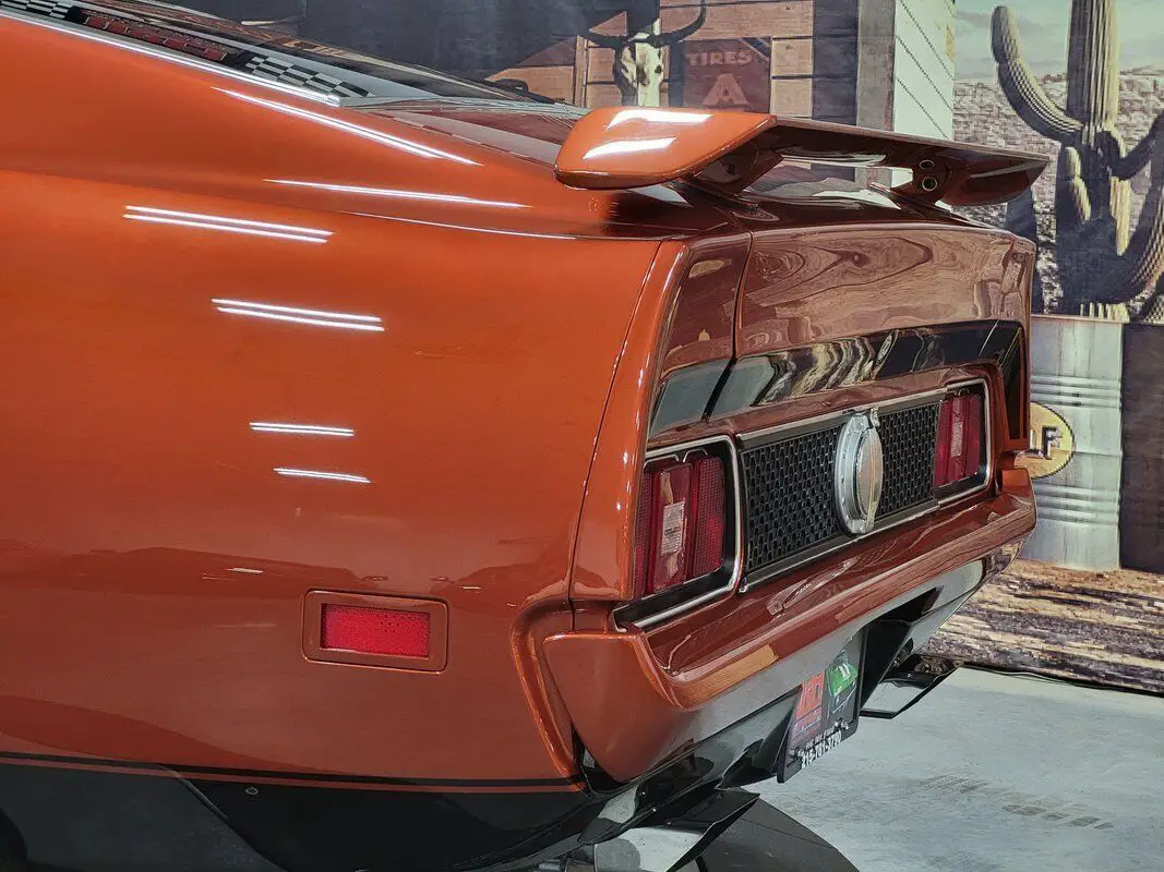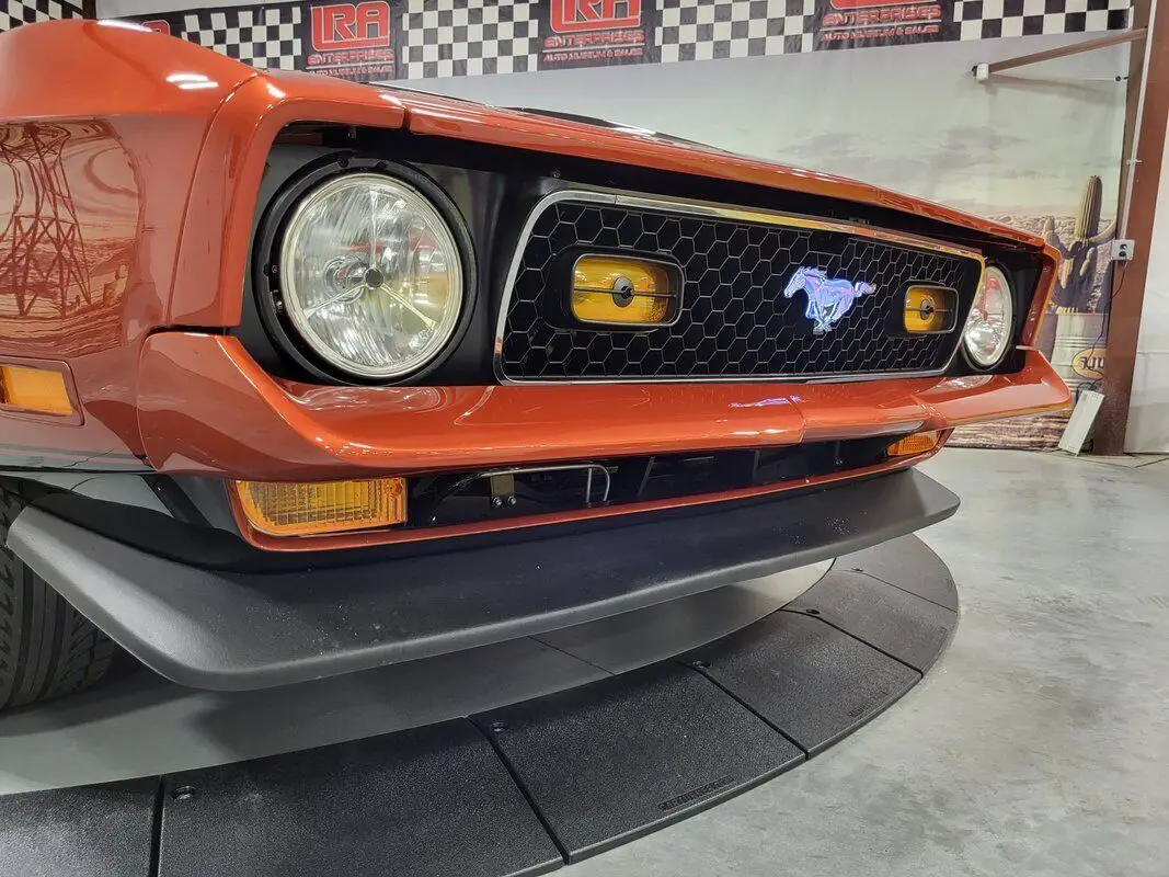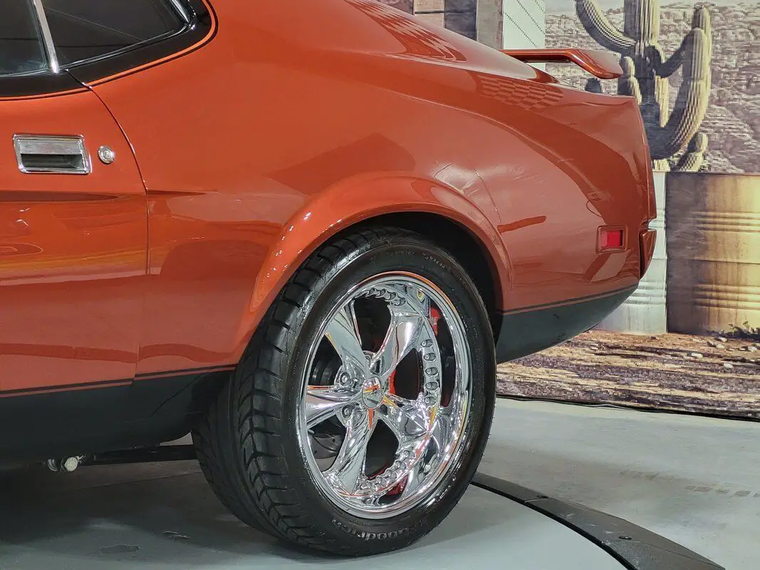 In limited supply, imagine how many of the 1971 Mustangs still roam free, and this is an excellent opportunity for you to grasp the unique style of this fantastic American Classic! Rekindle the joy of driving in our Fully Frame Off Restored 1971 Ford Mustang Mach 1 Coupe as it dominates the scene in Burnt Orange with a Black roof and black Mach stripe. a 460 punched to a 513 CID V8 that provides 650hp and an intoxicating rumble from the dual exhaust while coupled to a smooth-shifting C6 Automatic transmission with Overdrive paired to the impressive Ford 9-Inch rearend. Notice the One in the 513 on the side - the restorer left the Number 1 to preserve the natural patina from 1971 as a tribute to the car's test of time. Enjoy chrome accents and gorgeous wheels that add the perfect amount of polish, two-stage Wilwood brakes, reinforced leaf springs, and even a fresh gas tank and straps! The '70s brought in a bigger pony car with more sheet metal, a longer hood, a shorter deck, prominent crystal headlamps, the galloping horse emblem, painted bumpers, and an aggressive black chin spoiler matched to a painted decklid spoiler for that 1970s aero flair.