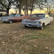 1964 Ford Galaxie 500 with Edelbrock Aluminum Heads, Edelbrock Intake manifold and Edelbrock Dual 4 Barrel Carburetors. Motor is a 390 FE stroked to 445 cubic inches. T-10 4 speed Transmission, Electric Cut Outs for open Headers. Car is in awesome condition clean straight stainless steel with light weight components added, this car is one of my favorites and is a blast to drive. Halibrand rear wheels and rocket front to give gasser style look. Can also switch over to 4 matching old school American racing wheels if preferred.