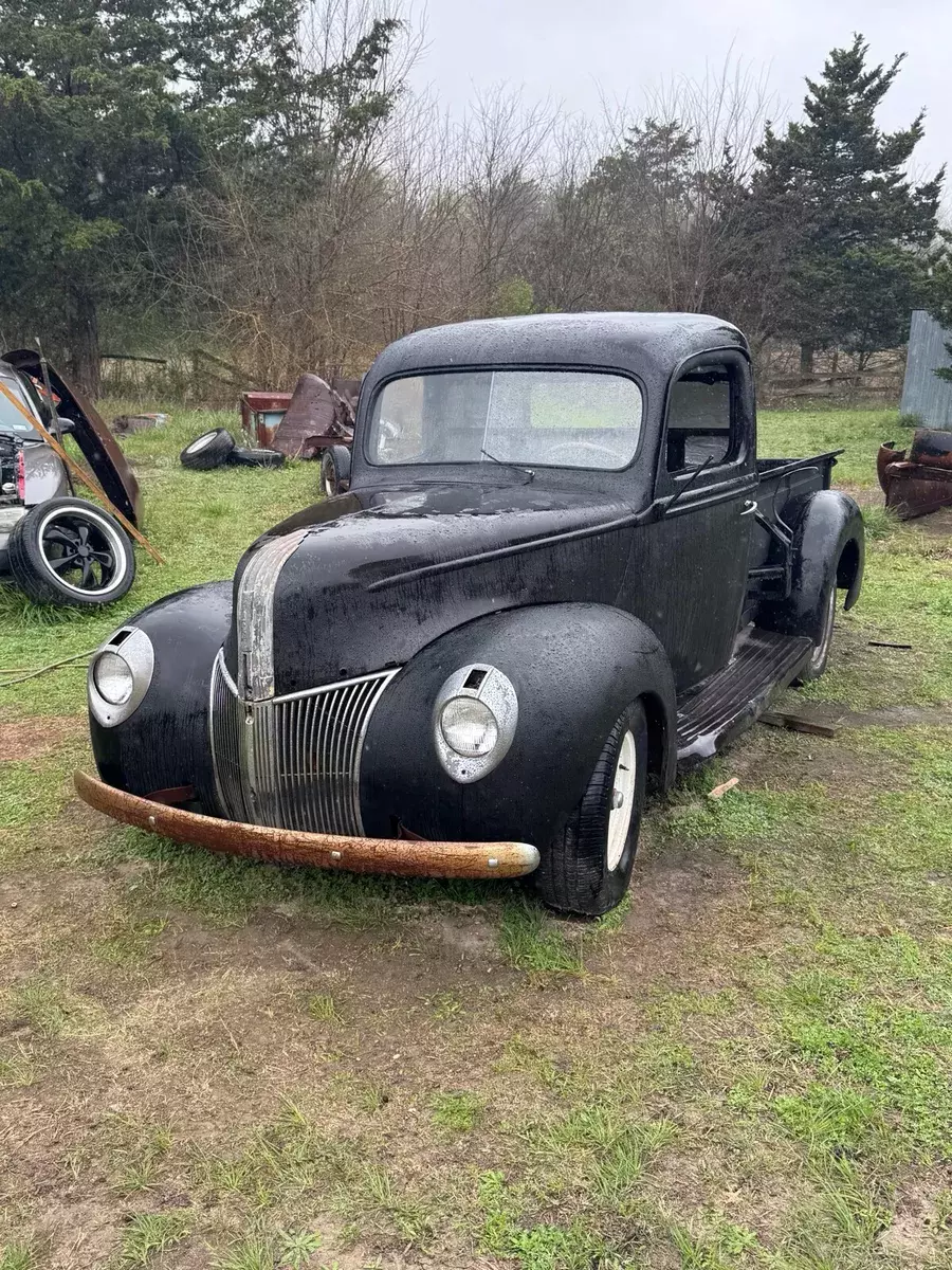 1940 ford pickup project. Does not run. Engine turns but needs to be rebuilt due to low compression. Has Fenton headers, power master starter, petronix igniter in the distributor and petronix coil. 3 speed manual in unknown condition.