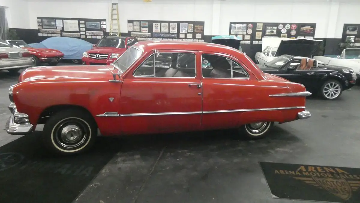 HERE IS AN OLD SCHOOL 51 FORD CLUB COUPE.......SHOEBOX..... THE BODY IS GOOD...THERE ARE A COUPLE SPOTS THAT NEED ATTENTION....BUT OVERALL GOOD....PAINT HAS BEEN TOUCHED UP HERE AND THERE..IT HAS A LOT OF PATINA...THE BRIGHT WORK IS MOSTLY GOOD, BUT NOT PERFECT....NEW HUBCAPS ON STEEL WHEELS...TIRES ALMOST NEW. INTERIOR IS OLDER, BUT MOSTLY GOOD...DASH IS VERY NICE...TRUNK IS SOLID...BUT NOT DETAILED...UNDER HOOD IS A GOOD RUNNING FLATHEAD THAT FIRES RIGHT UP... IT RUNS GREAT....ENGINE COMPARTMENT IS DETAILED.....PREVIOUS OWNER HAD THE CAR SINCE THE 60 S....UNDERCARRIAGE AND FRAME ARE SOLID....LOT OF DIFFERENT OPTIONS....DRIVE AS-IS.....PAINT IT ..OR MAYBE PRIMER IT WITH RED PRIMER....IT IS A GOOD CAR THAT CAN BE DRIVEN AN ENJOYED AT A CHEAP PRICE....