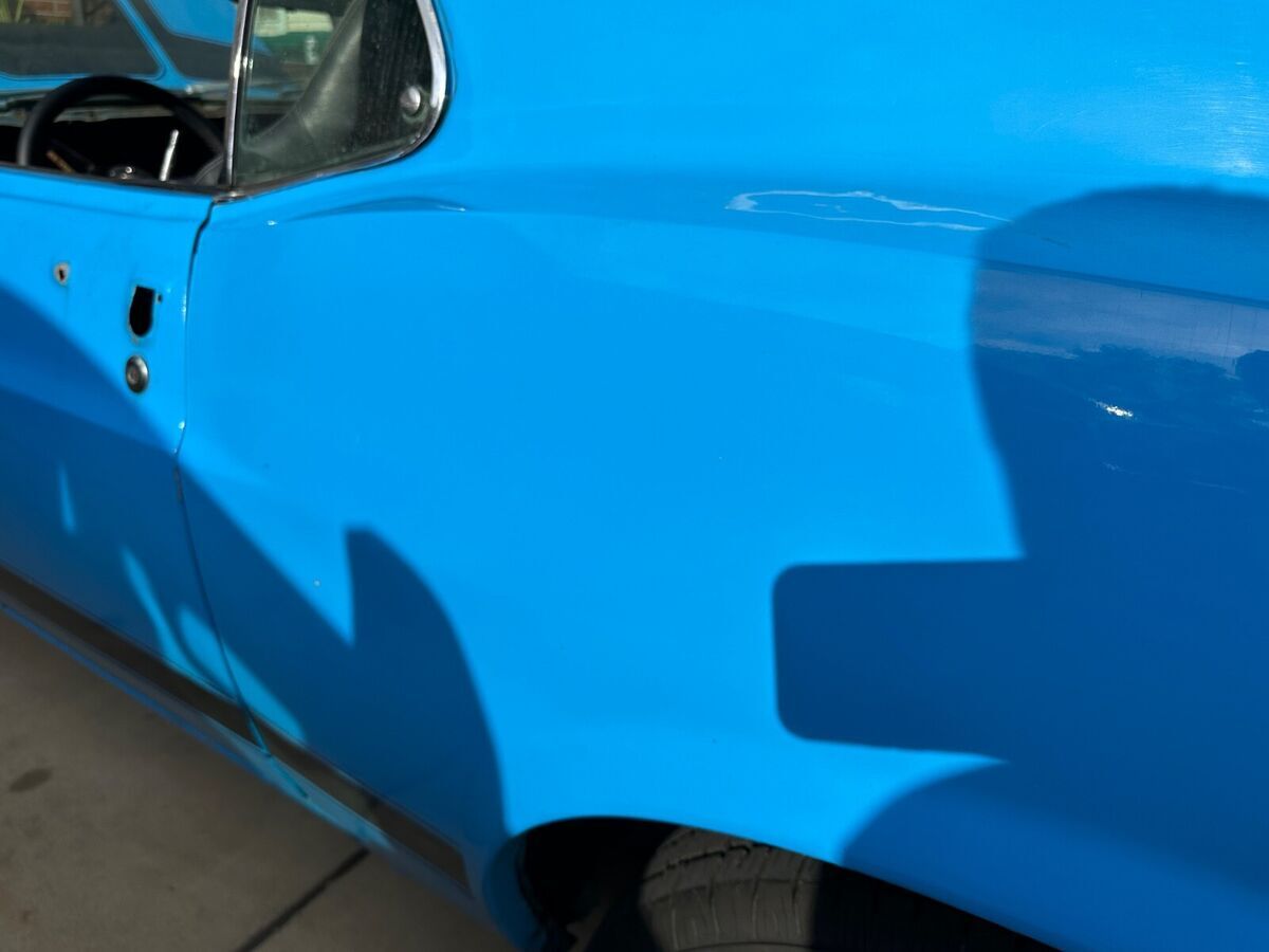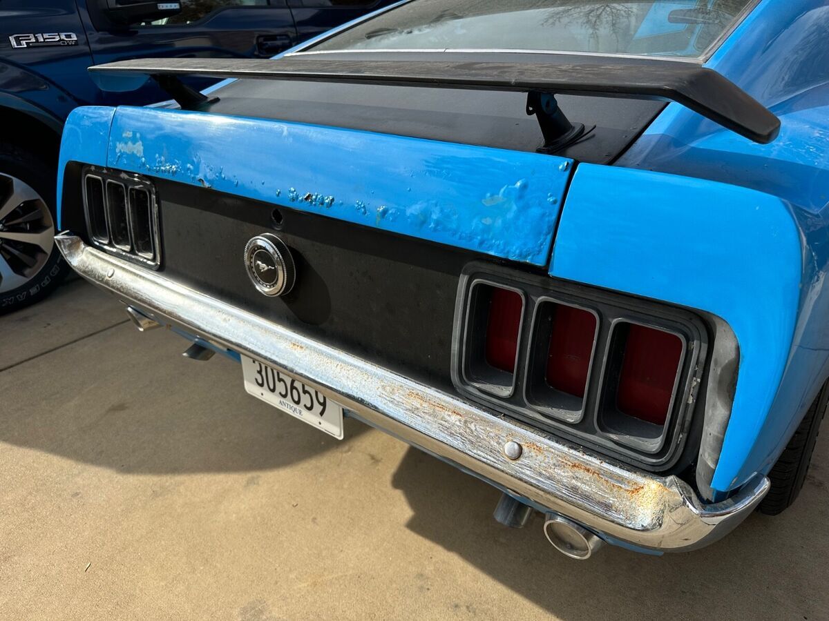 Original Sportsroof/fastback, not a Mach 1, or Boss 302. Grabber Blue is the original color and a 302 2v/3 speed manual is what it came with according to the Marti Report. (A reproduction door tag was also ordered and will go with the car). Clutch pedal assembly is still present under the dash. Spent most of its life, 1973-2014 in Texas. Was restored around 2010. At that time, it was a great car, lot of effort into the restore, but got hit by debris from a nearby tornado in 2015 and PO let it sit outside.