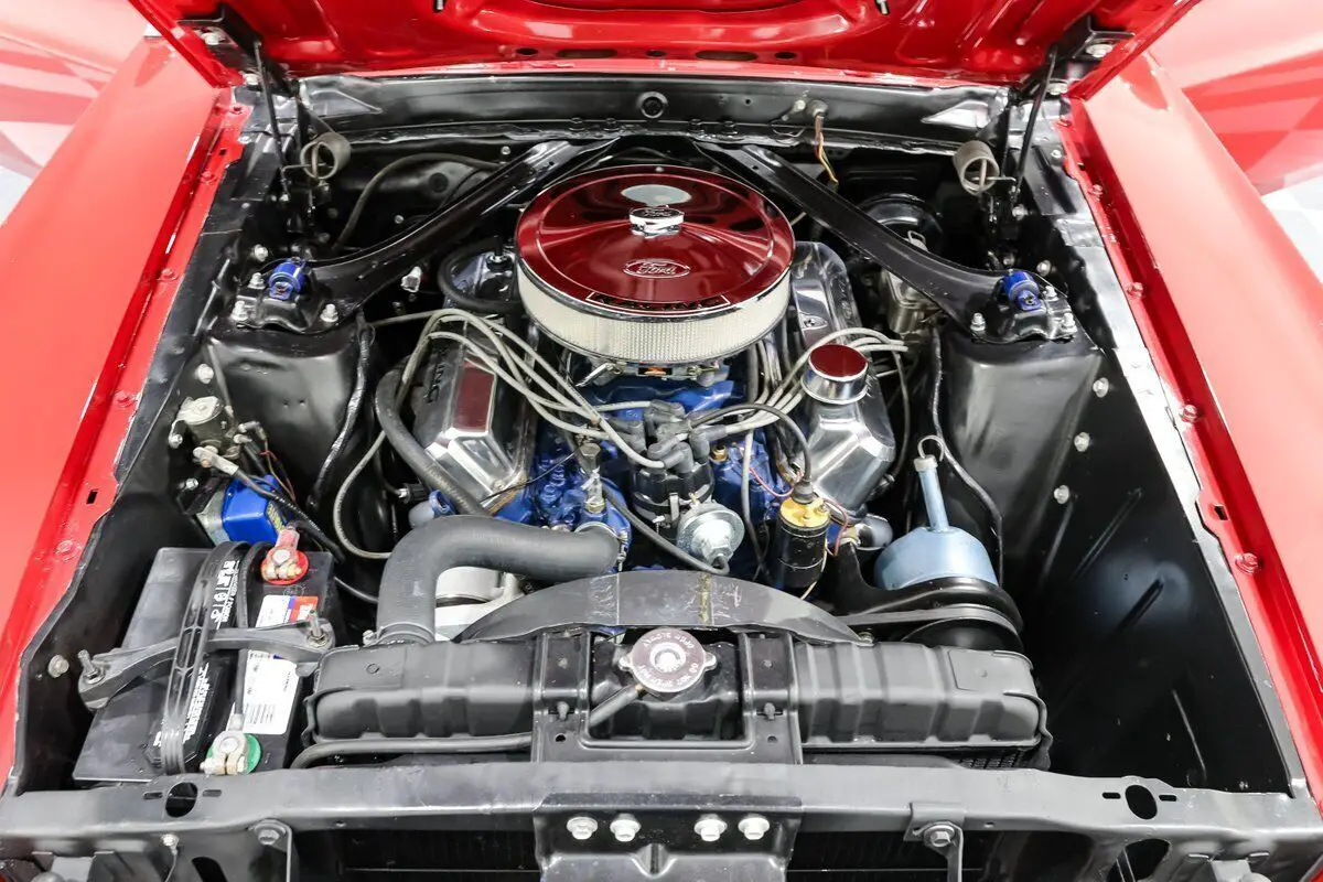 Inside, the wood grain steering wheel and shifter add to the classic feel, complementing the bright white vinyl interior. This cabin was built for driving, with bucket seats providing the right mix of comfort and support. The iconic Fastback roofline and long hood make this car one of the most sought-after designs from the first-generation Mustang lineup.