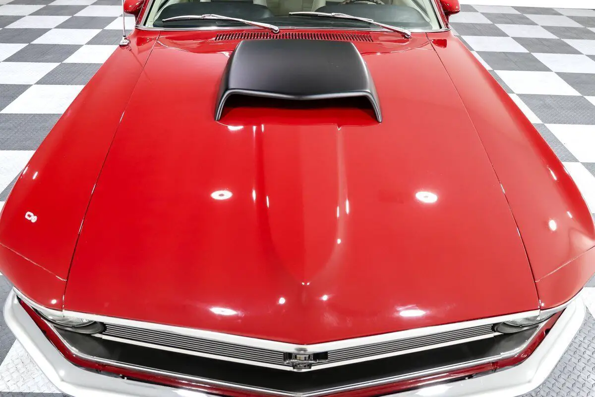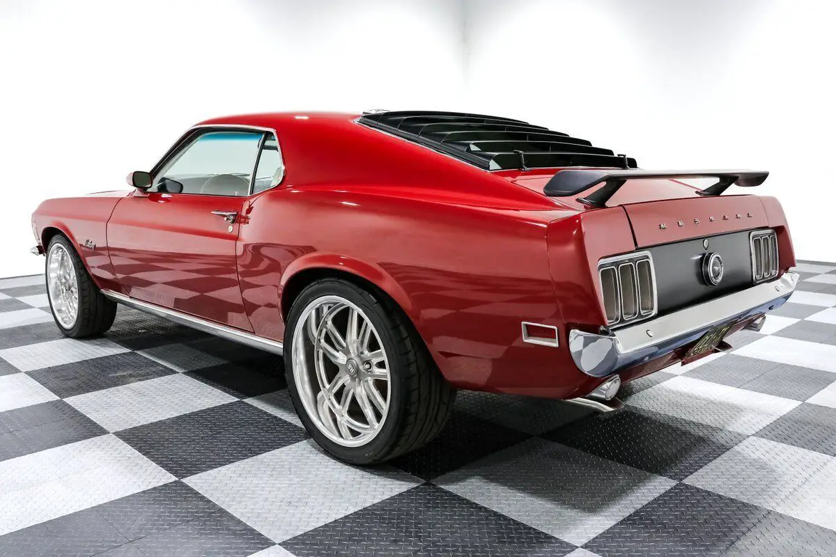Draped in striking red with a white bucket seat interior, this Fastback has all the right styling cues. A Boss 429-style hood scoop, rear window louvers, and front and rear spoilers give it an unmistakable road presence. Rolling on a set of 20-inch US Mags wheels, this Mustang delivers a bold stance that blends classic muscle car attitude with a modern touch.