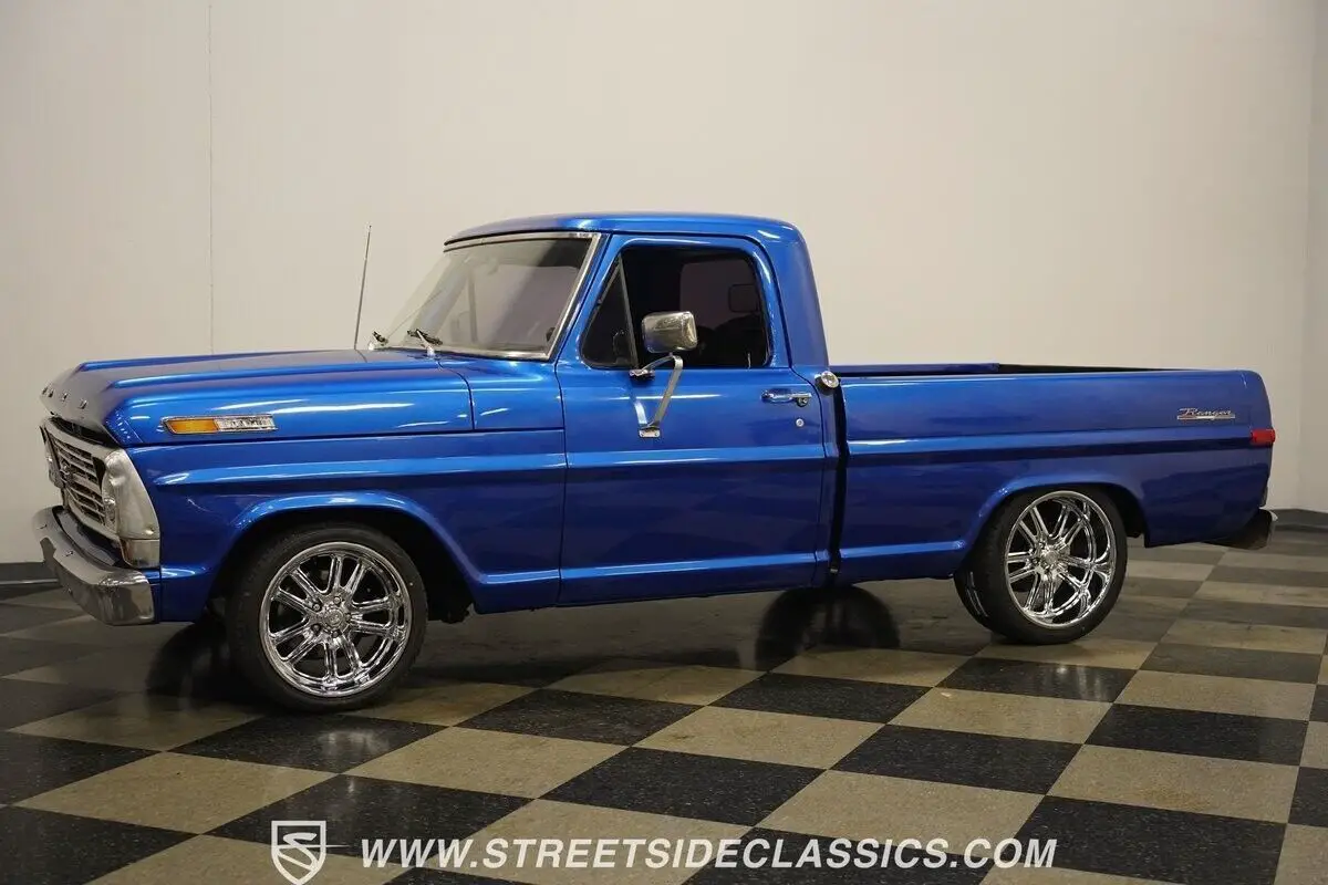 Vehicle Original VIN : F10YEG10093HIGHLIGHTS: • 351 V8 Engine • AOD 4-Speed Automatic Transmission • Ford 9-inch Rear End • Edelbrock Intake and Carburetor • FlowMaster Dual Exhaust • Power Front Disc Brakes • Power Steering • Twin I-Beam Front Suspension • Leaf Spring Rear Suspension • Deep Blue Paint • Lowered Stance • 18" Front/20" Rear U.S. Mags Wheels • 225/40R18 Front Tires, 275/35R20 Rear Tires • Rhino-Lined Bed • Tinted Windows • Dual Exhaust Outlets • Black Interior with Bucket Seats with Folding Armrest • New Dashboard Gauges • Floor-Mounted Shifter • AM/FM CD Player with AUX Input • Full Frame-Off Restoration