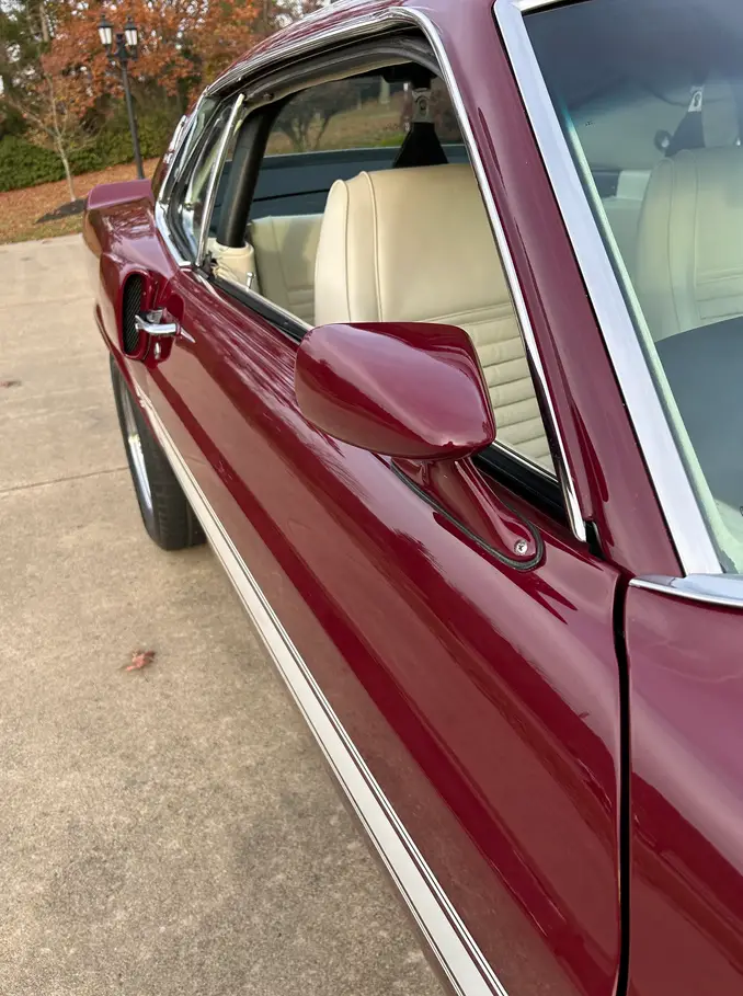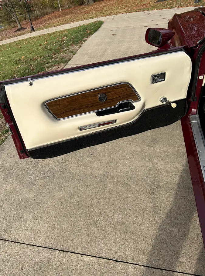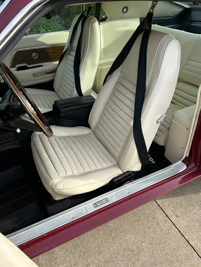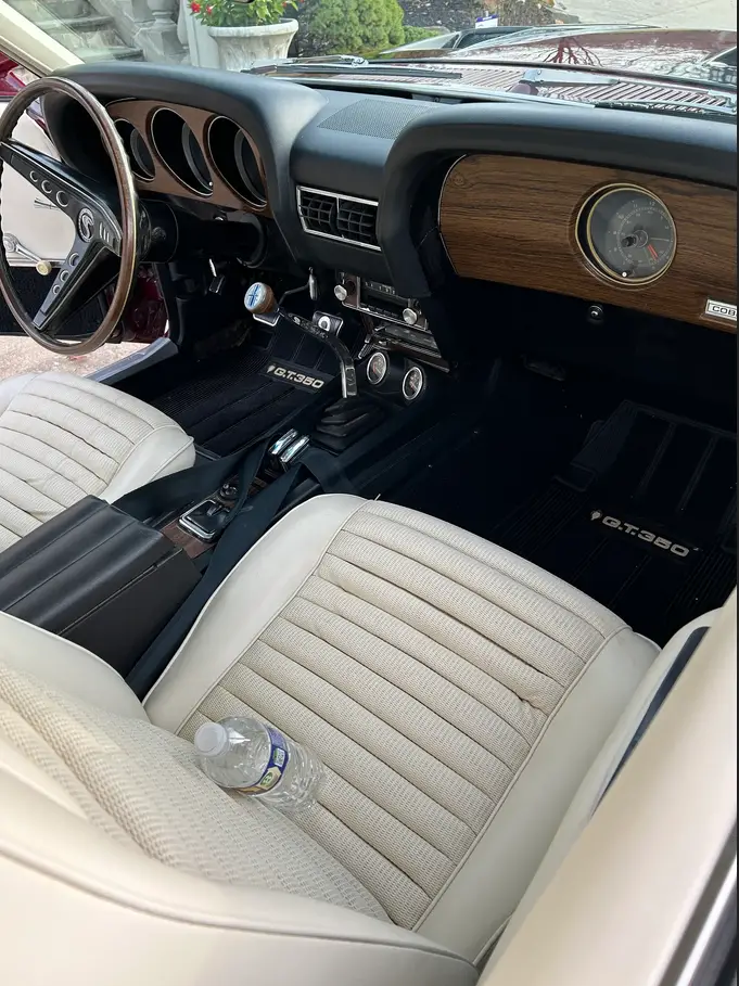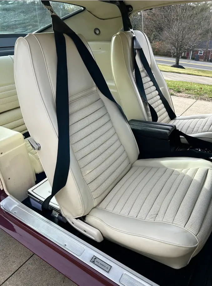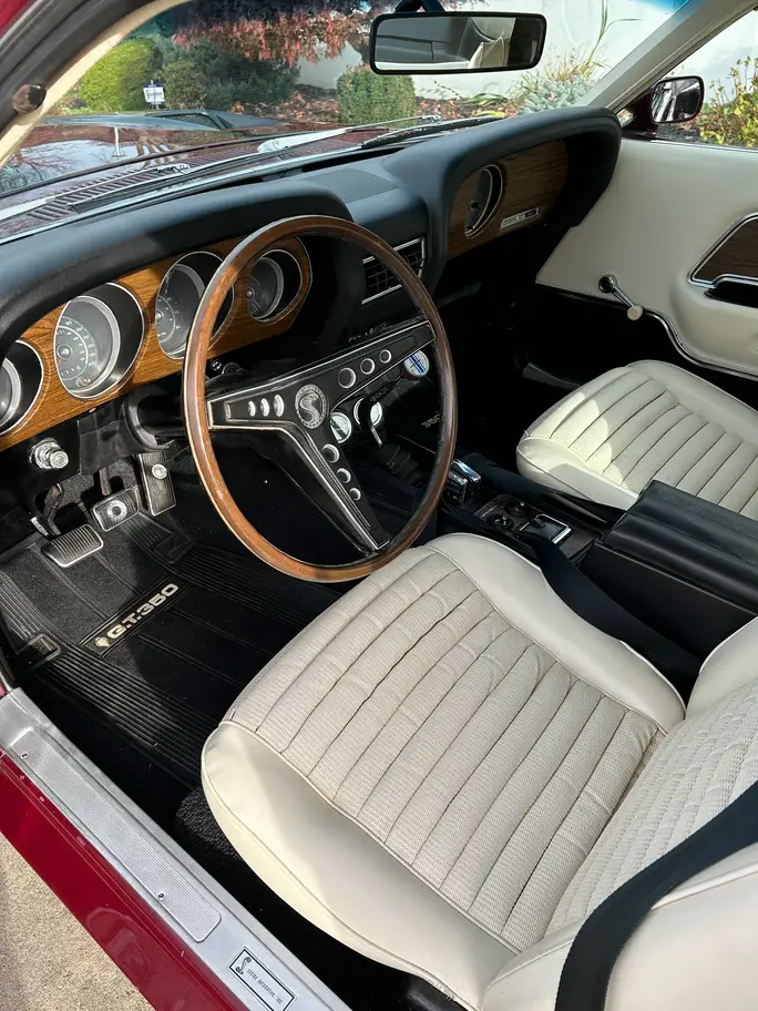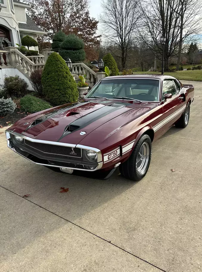 This 1970 Shelby Mustang GT350 fastback was built on June 20, 1969, and sold by Tallitsch Ford Sales, Sycamore, Illinois. Finished in Grabber Blue over White knitted vinyl, it is powered by a 351ci Windsor V8 mated to a FMX Select Shift Automatic transmission and features power-assisted steering and front disc brakes, as well as a fold-down rear seat and an AM radio. This GT350 shows 34,869 miles is offered with a Deluxe Marti Report, Shelby American World Registry book, Original Owner’s Manual, 1969 Shelby Shop Manual, 1969-1970 Unique Parts Catalog.Per the SAAC Registry of the 12 Grabber Blue Shelby Mustang GT350 sold in 1970, there were only 2 factory painted Grabber Blue made with white interior and no AC making this car a very rare car. One of the previous owners did not like the Grabber Blue and spent $10,000 to paint it Royal Maroon, another rare color, plus he did not like the automatic and changed it to a 4-speed transmission.Five-spoke 15” alloy wheels wear Cobra center caps, polished lips, and Goodyear Eagle tires. The car is equipped with power-assisted steering and brakes, the latter of which features discs up front and drums out back.The cabin is trimmed in white knitted vinyl high-backed bucket seats. Color-keyed upholstery covers the optional Sport Deck folding rear seat and door panels, while white/black faux teak accents the doors, and the dash, and center console are finished in black faux. A roll bar with inertia-reel harnesses was standard on the Shelby Mustang. A three-spoke steering wheel frames a 140-mph speedometer and a tachometer flanked by coolant temperature and fuel indicators, while an oil pressure gauge and amp meter are mounted ahead of the shifter. The five-digit odometer shows 34,869 miles.At present the horn, radio, interior lights, oil and amp gauges are not working. I have tried finding an old school guy who knows these cars with no luck. SAAC tells me that all run through the amp gauge to the fuse panel. Possibly a wiring problem.Power is sent to the rear wheels through a wide-ratio four-speed manual transmission and a 3.25 traction lock rear end.The Deluxe Marti Report outlines original colors and options as well as build and purchase dates.