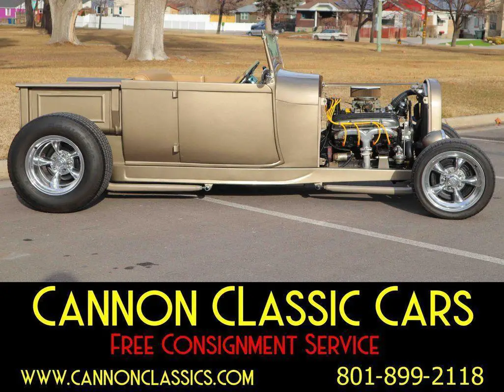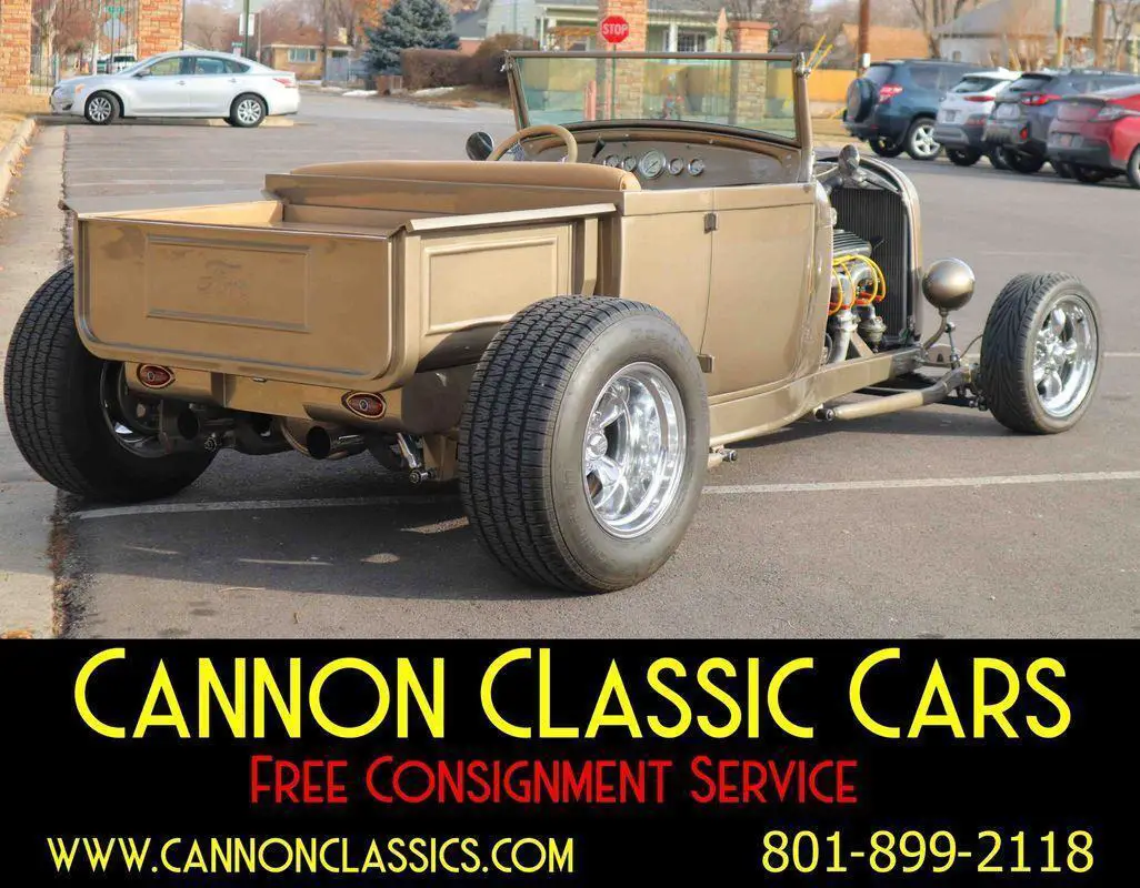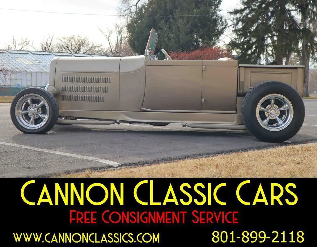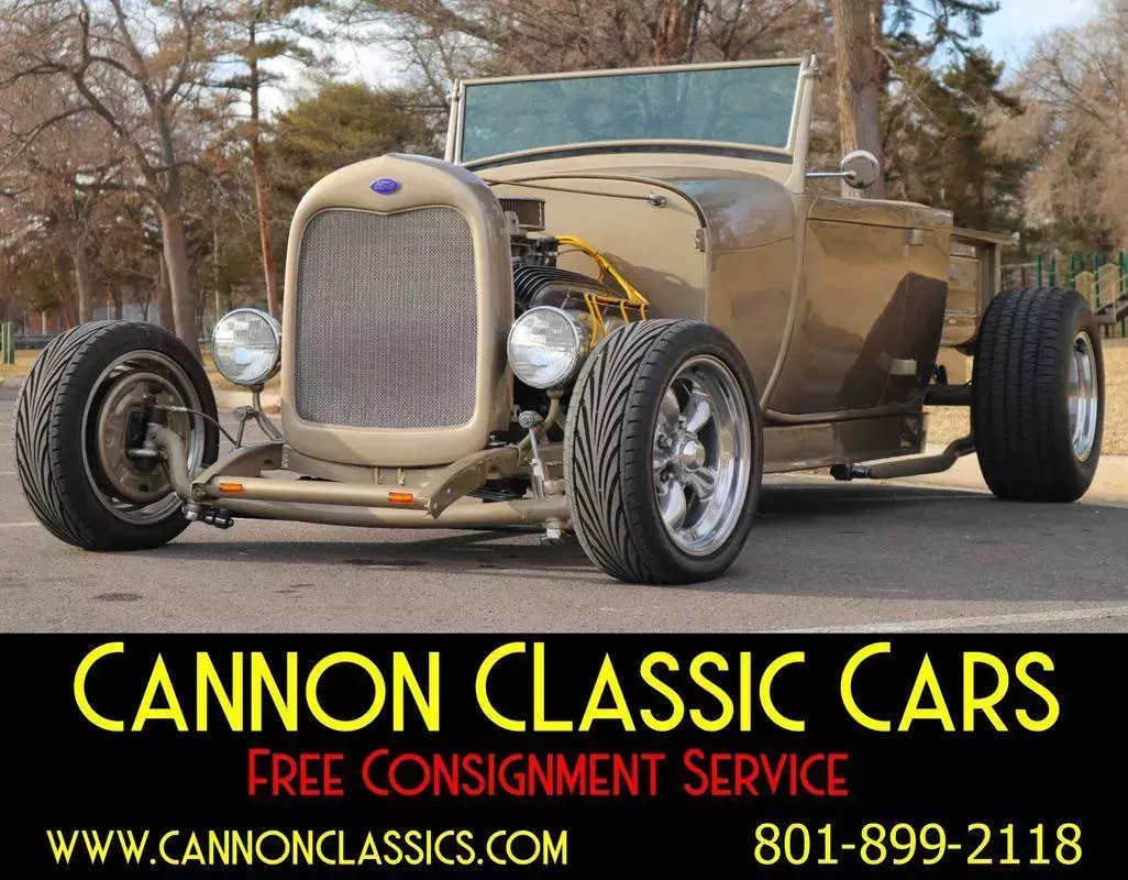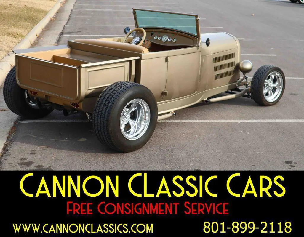 Vehicle Original VIN : AZ3681191929 Ford Model A RoadsterKey Notes: Custom Hot Rod With Lots of Detail! Originally a 1929 Model A Roadster Pickup ~500 miles on entire build Drivetrain: Custom one-off 1932 Frame 350cui Chevy V8 TH350 'Turbo350' Automatic 3 speed Ford 8' rear end with tall highway gearing Edelbrock intake with dress up kit Holley 600 Carb Chrome Holly Mechanical Fuel Pump Smooth HPC Coated Ram Horns Polished water pump Chrome Pulleys Accel Wire with Chrome Separators Polished Finned Valve Covers and Air Cleaner Stainless Allen Bolts all around Polished Billet O Ring Thermostat housing Chrome Fuel Pressure Valve High Output Mini Alternator Aluminum Radiator Tubular K Members with removable trans mount 4' Dropped tube axle, custom wishbones with spring behind F-100 Front Drum Brakes, Color matched backings Vega Cross Steering Chrome tie rod ends Chrome Shocks and mounts Billet adjustable coilovers Custom split wishbones Pan Hard Bar Stainless steel front and rear brake lines, concealed through frame Adjustable proportioning valve Frame and suspension fully color matched with powder coat Torque Thrust 11 Wheels (15x16 Front | 15x10 Rear) Exterior: 1 of 2 custom 4 inch stretched body's Custom Shortened Bed Color matched one-off fuel tank in bed Bare Top Frame included with car! Steel Reinforced stretched suicide doors, exposed hinges Steel 1929 Smooth Grill Shell 3 Pc Aluminum Louvered Hood, made to match the grille. Chopped windshield, Original Windshield Posts King Bees headlights, 1939 Tail Lights Flattened smooth firewall Taillights and License plate are frenched into exposed frame (No Roll Pan) Frame C Notched in front and rear for suspension Front Spreader bar with working turn signals One-off Shock and Headlight stands Interior: Tan Ultra Leather Interior 1932 Dash. Classic White Face Gauges GM Columns with Billet Chrome Plated Banjo Billet Pedals Brand new wiring and fuse box concealed under seat with batteryDo you have a great consignment like this one? Let us sell it for you! We offer a zero-cost consignment service. Financing is available, so please call us for more information at 801-899-2118. We are a licensed and bonded dealership in the state of Utah, with Utah Dealer License #148B.This vehicle is available for viewing in our showroom at Cannon Classic Cars, located at 809 W 1700 S, Salt Lake City, Utah 84104. We would love to talk to you about this classic! You are always welcome and encouraged to visit the vehicle in person. You can also text us at 801-999-0513 with any questions.Please note that this vehicle is sold as-is, with no warranty expressed or implied, and is mileage exempt. The buyer is responsible for shipping arrangements and costs. Deposits are non-refundable.