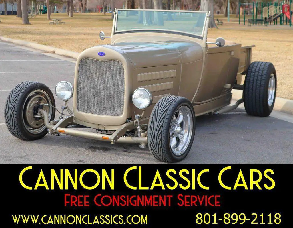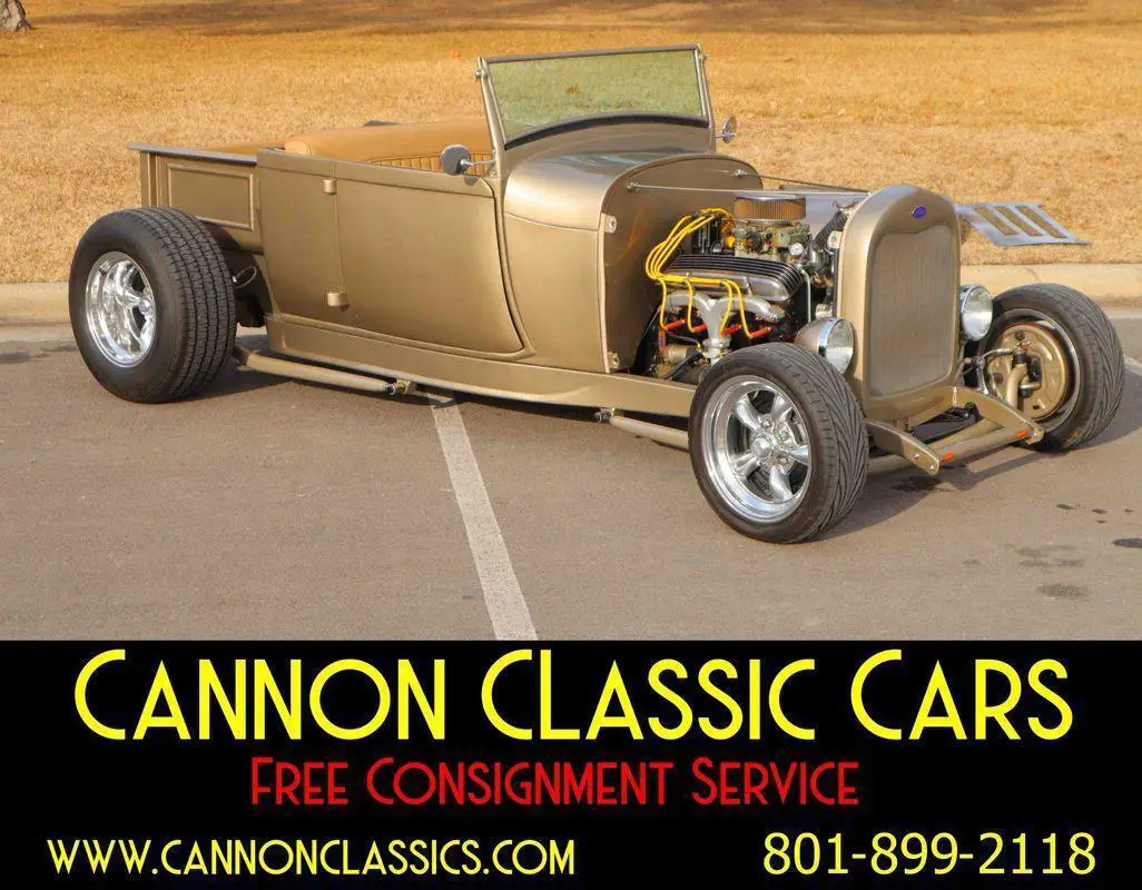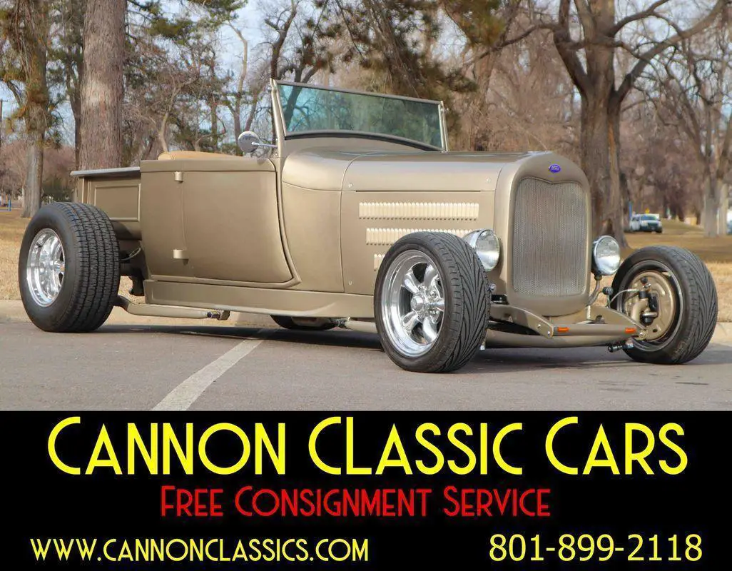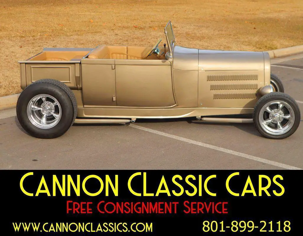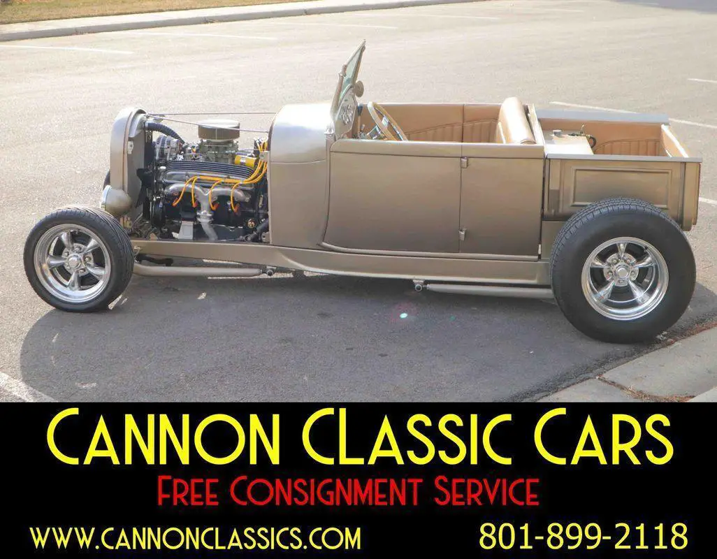 Vehicle Original VIN : AZ3681191929 Ford Model A RoadsterKey Notes: Custom Hot Rod With Lots of Detail! Originally a 1929 Model A Roadster Pickup ~500 miles on entire build Drivetrain: Custom one-off 1932 Frame 350cui Chevy V8 TH350 'Turbo350' Automatic 3 speed Ford 8' rear end with tall highway gearing Edelbrock intake with dress up kit Holley 600 Carb Chrome Holly Mechanical Fuel Pump Smooth HPC Coated Ram Horns Polished water pump Chrome Pulleys Accel Wire with Chrome Separators Polished Finned Valve Covers and Air Cleaner Stainless Allen Bolts all around Polished Billet O Ring Thermostat housing Chrome Fuel Pressure Valve High Output Mini Alternator Aluminum Radiator Tubular K Members with removable trans mount 4' Dropped tube axle, custom wishbones with spring behind F-100 Front Drum Brakes, Color matched backings Vega Cross Steering Chrome tie rod ends Chrome Shocks and mounts Billet adjustable coilovers Custom split wishbones Pan Hard Bar Stainless steel front and rear brake lines, concealed through frame Adjustable proportioning valve Frame and suspension fully color matched with powder coat Torque Thrust 11 Wheels (15x16 Front | 15x10 Rear) Exterior: 1 of 2 custom 4 inch stretched body's Custom Shortened Bed Color matched one-off fuel tank in bed Bare Top Frame included with car! Steel Reinforced stretched suicide doors, exposed hinges Steel 1929 Smooth Grill Shell 3 Pc Aluminum Louvered Hood, made to match the grille. Chopped windshield, Original Windshield Posts King Bees headlights, 1939 Tail Lights Flattened smooth firewall Taillights and License plate are frenched into exposed frame (No Roll Pan) Frame C Notched in front and rear for suspension Front Spreader bar with working turn signals One-off Shock and Headlight stands Interior: Tan Ultra Leather Interior 1932 Dash. Classic White Face Gauges GM Columns with Billet Chrome Plated Banjo Billet Pedals Brand new wiring and fuse box concealed under seat with batteryDo you have a great consignment like this one? Let us sell it for you! We offer a zero-cost consignment service. Financing is available, so please call us for more information at 801-899-2118. We are a licensed and bonded dealership in the state of Utah, with Utah Dealer License #148B.This vehicle is available for viewing in our showroom at Cannon Classic Cars, located at 809 W 1700 S, Salt Lake City, Utah 84104. We would love to talk to you about this classic! You are always welcome and encouraged to visit the vehicle in person. You can also text us at 801-999-0513 with any questions.Please note that this vehicle is sold as-is, with no warranty expressed or implied, and is mileage exempt. The buyer is responsible for shipping arrangements and costs. Deposits are non-refundable.