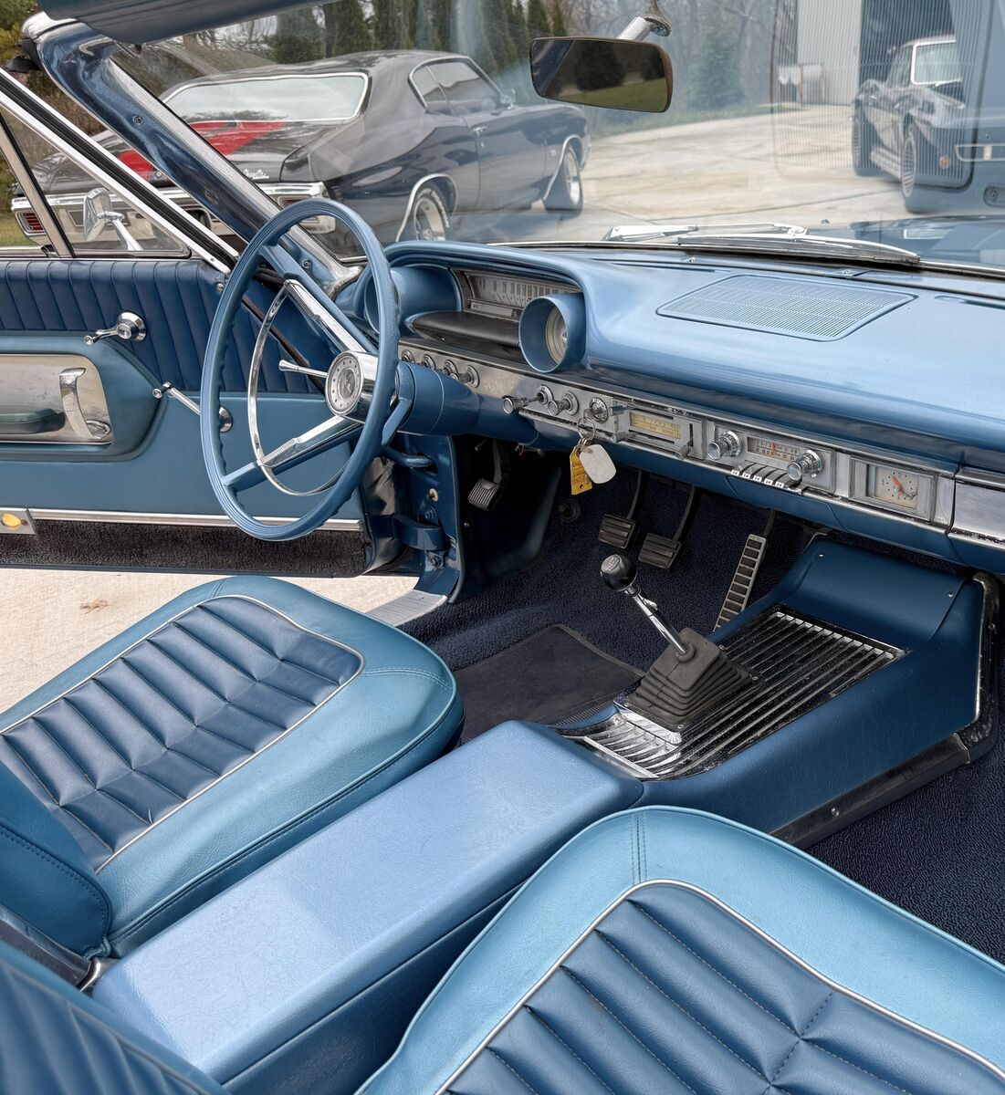 GORGEOUS EXTREMELY RARE FACTORY 4SPD WITH DEALER INSTALLED TRI-POWER 1964 GALAXIE CONVERTIBLE 500XL Z-CODE 390 TRI-POWER CAST IRON FACTORY HEADERS 4SPD PS PB FACTORY GAUGES POWER TOP SOLID & SUPER STRAIGHT BODY BEAUTIFUL HIGH QUALITY FACTORY CORRECT GUARDSMAN BLUE PAINT WITH GORGEOUS DELUXE LIGHT BLUE & MEDIUM BLUE CRUSH VINYLE BUCKETS AND CONSOLE INTERIOR AND LIKE NEW WHITE POWER TOP