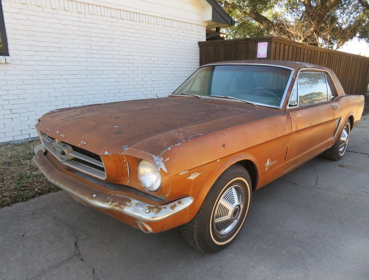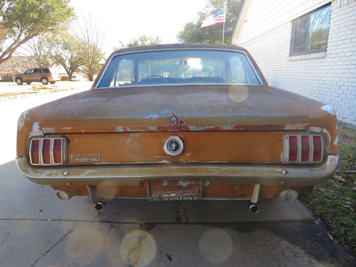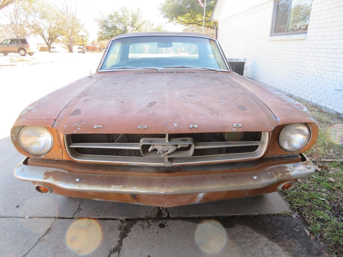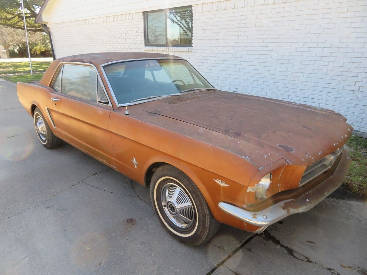 Vehicle Original VIN : 5R07AThis classic pony is up for auction..... Spent it's life in California and Texas.... A true blue plate classic car from California......Car was sitting for 15+ years....... We got it running again........ Runs and drives now..........Car was originally blue and original owner changed everything to brown/tan as you can see in all the pictures so everything shows to be original which is ideal in restoring a classic vehicle.......The hard part is done (got it running again and installed a new headliner for new owner)........The engine compartment shows all original ........The 289 V8 engine runs and drives.........This pony has a factory 4speed manual transmission.......Factory A code meaning 289 V8 with a 4v carburetor.......Trunk area has a good spare and clean original metal as shown ............. Mustang rides on a matching set of white wall tires w/ factory correct 65' mustang hubcaps ........... Undercarriage shows clean / original 1965 metal .......... Has a new gas tank, new carburetor, new dual exhaust system........In summary this classic pony is a nice investment as it's only going up in value......... Let the pictures speak for themselves ............ Can't go wrong with this car as it's a true first generation 65 mustang that is ready for new owner to restore to their liking..........Good luck and thank you for bidding. Please do not hesitate to contact me if you should have any questions.This classic mustang will be a nice project car for someone to restore this summerI can help with transport. Let me know your zip code and I can get you a discounted transport quote to your door.Check out my other classic cars I have posted on eBay. !!!!!!!!!!I have videos i can email interested parties on the mustang.