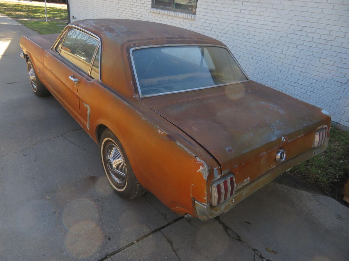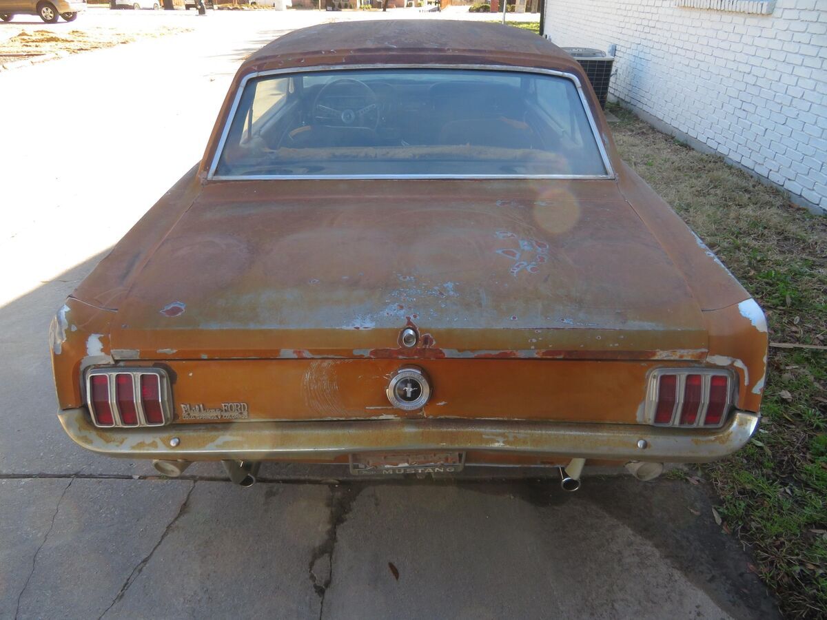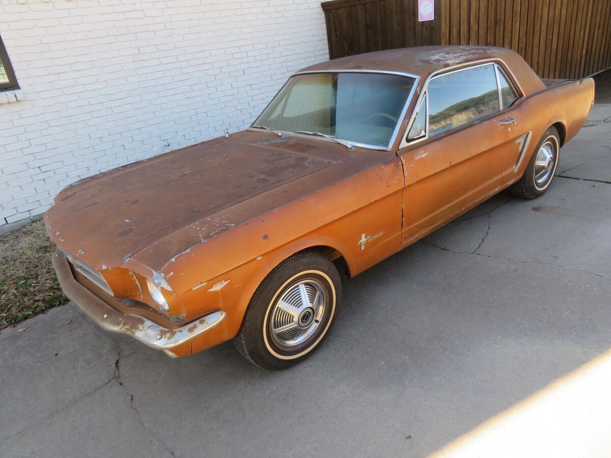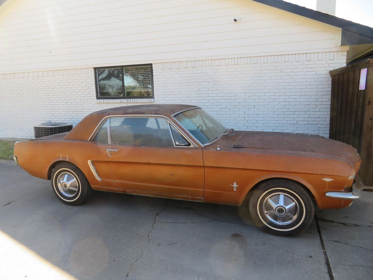 Vehicle Original VIN : 5R07AThis classic pony is up for auction..... Spent it's life in California and Texas.... A true blue plate classic car from California......Car was sitting for 15+ years....... We got it running again........ Runs and drives now..........Car was originally blue and original owner changed everything to brown/tan as you can see in all the pictures so everything shows to be original which is ideal in restoring a classic vehicle.......The hard part is done (got it running again and installed a new headliner for new owner)........The engine compartment shows all original ........The 289 V8 engine runs and drives.........This pony has a factory 4speed manual transmission.......Factory A code meaning 289 V8 with a 4v carburetor.......Trunk area has a good spare and clean original metal as shown ............. Mustang rides on a matching set of white wall tires w/ factory correct 65' mustang hubcaps ........... Undercarriage shows clean / original 1965 metal .......... Has a new gas tank, new carburetor, new dual exhaust system........In summary this classic pony is a nice investment as it's only going up in value......... Let the pictures speak for themselves ............ Can't go wrong with this car as it's a true first generation 65 mustang that is ready for new owner to restore to their liking..........Good luck and thank you for bidding. Please do not hesitate to contact me if you should have any questions.This classic mustang will be a nice project car for someone to restore this summerI can help with transport. Let me know your zip code and I can get you a discounted transport quote to your door.Check out my other classic cars I have posted on eBay. !!!!!!!!!!I have videos i can email interested parties on the mustang.