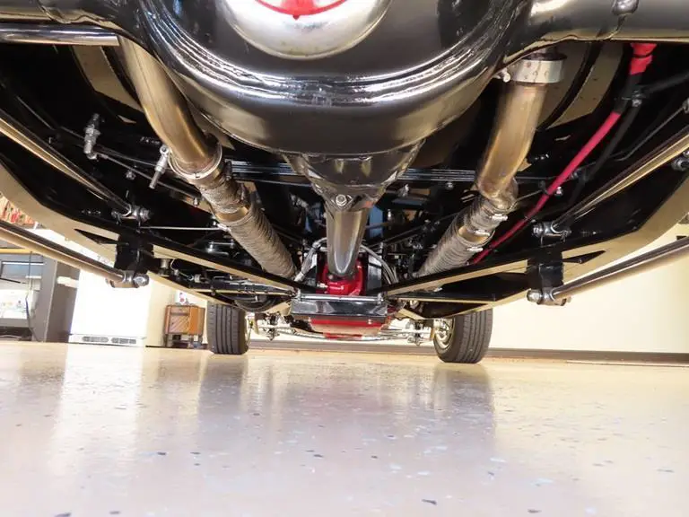 The drive shaft is from Denny's Driveshafts out of Kenmore, NY. The overall length is 31 and 3/16inches. In the engine compartment you will see a chrome Powermaster alternator, a Powermaster starter, a Walker radiator with a Cooling Component cooling fan. Exhaust is expelled through a 2" stainless steel system with duel exhausts.