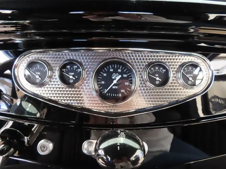 There are Classic Industries instruments, and the car is cooled and heated with Vintage Air's Streamline 4 knob unit. This was installed at the time of the build and perfectly fitted to look very sleek.