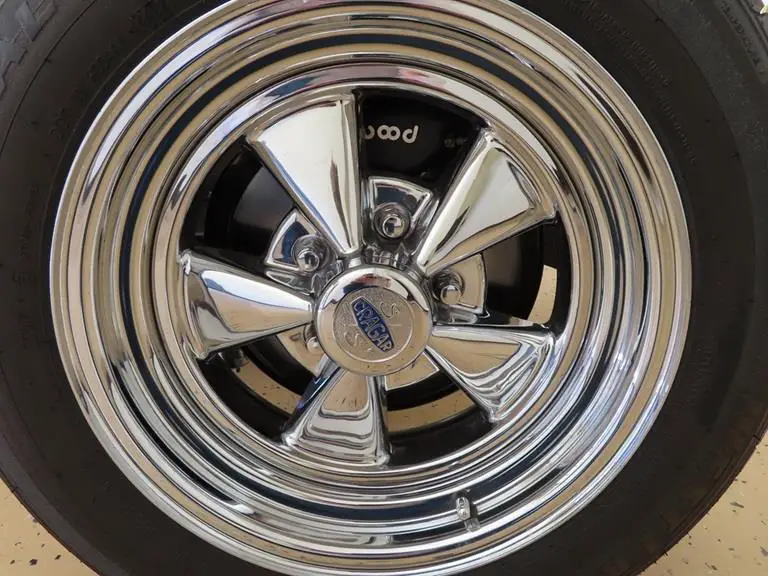 The car rides on a new set of tires and wheels installed by the new owner. He chose a set of Westlake radials There are SU318 H/Ts size 265/75R15 in the rear and R/P18s size 195/65R15 in the front. These tires are wrapped around the very nice chrome Crager 5 spokes.