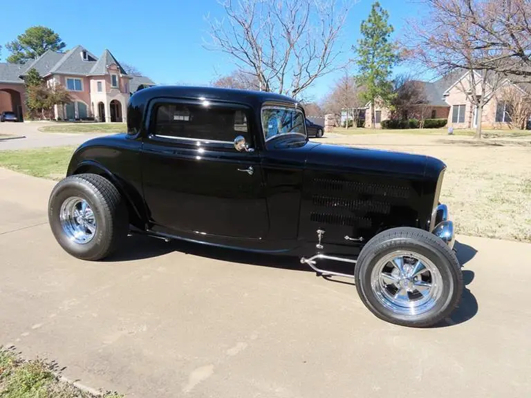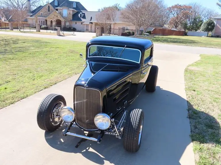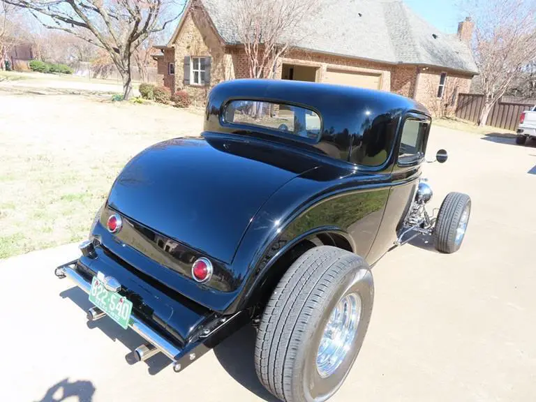 There are so many 32 street rods out there. The 3 window is a bit harder to find, but this car is different. It was built from the ground up and took 4 years to build. The brain child of a retired electrical engineer from south Texas, this car is a one of a kind. This gentleman thought of everything when he designed it, and used nothing but the best top quality components. The current owner of the 32 purchased it 2 years ago. Not long after the car was completed. There are 2467 miles on the odometer. Half put on by the builder and the other half by the current owner. Here are the basic components and where they are from: The Frame- manufactured by Total Cost Involved Engineering (TCI). It is a numbered frame with a certificate of manufacture. It has a 3 inch pinch.The front end is a SoCal 4 inch Superbell drop axle, and the rear is a Ride Tech adjustable coil over shock model.The brakes are power discs by Wilwood, 11 inch in front and 12 inch in the rear. The steering is not power, it is a unit manufactured by Unisteer Performance Products. This is a rack and pinion unit specifically made for the early Fords. The car steers extremely well. The car rides on a new set of tires and wheels installed by the new owner. He chose a set of Westlake radials There are SU318 H/Ts size 265/75R15 in the rear and R/P18s size 195/65R15 in the front. These tires are wrapped around the very nice chrome Crager 5 spokes. The engine is a crate ZZ4 350 GM long block with 355 HP. The GM ZZ4 longblock features a cast-iron block with 4-bolt main caps, a forged steel crankshaft, and aluminum cylinder heads. This one is fitted with an Offenhauser intake and 3 Rochester carburetors.The drive shaft is from Denny's Driveshafts out of Kenmore, NY. The overall length is 31 and 3/16inches. In the engine compartment you will see a chrome Powermaster alternator, a Powermaster starter, a Walker radiator with a Cooling Component cooling fan. Exhaust is expelled through a 2" stainless steel system with duel exhausts.The transmission is a 700R 4 automatic by Phoenix Transmission Products, with Currie 9" Positraction. There is a Gennie floor shifter as well as a parking brake.The body is manufactured by N & N Fiberglass Reproductions out of Belleville, AR. They specialize in 32 and 34 bodies. The hood is steel and was manufactured by Rootlieb and the front grill and grill shell are steel and are by Brookville. This is a High Boy because as you can see in the photos, the body sits on top of the frame and was not cut to drop down over the frame. The bench seat is a Glide Seat which is one of the top street rod seats. It is adjustable. There are Classic Industries instruments, and the car is cooled and heated with Vintage Air's Streamline 4 knob unit. This was installed at the time of the build and perfectly fitted to look very sleek. The interior was done in a beautiful black supple vinyl that feels like leather. before installing the interior, the car was completely lined top to bottom with the real Dynamat. You will also see in the photos, that there is a roll bar just behind the seat as well as in the trunk. There is access to the Optima battery from 2 ways. The back of the seat comes forward and there is a trap door as well as access from a false floor in the trunk. The car also comes with its own special Optima trickle charger. Other options are power windows, which are operated with the window cranks and not buttons. There door locks for the suicide doors to keep them from popping open. These are manually operated, but there is a chime that will go off if you start the car and forget to lock them. There is also a Flaming River tilt steering column with an attached tach. One of the best parts of this car besides it's great looks and performance, is the Ron Francis wiring harness and where it's located. Most of the time, you have to get on your back and be double jointed to get to the wiring and fuse panels on these street rods. In this 32, everything is right under the seat. You lift the bottom of the seat up and everything is so neatly done with an accompanying wiring diagram to easily replace a fuse or check any issue you may have. You will see a photo of this in our photos. I know I have forgotten something, there is just so much to mention. This is one of the finest 32 3 windows I have seen. There is nothing that does not work on the car, and it performs very well in every way. It looks good, sounds great and will win any car show in a minute. I have a flash drive with over 380 photos and copies of the paperwork, as well as the 150 plus photos that I took. Included with the car is a custom car cover, the battery charger, a notebook with all of the paperwork that accompanies every part in the car. The car is titled as a 32 Ford, and is a clear Texas title. The only thing the car does not have, is a radio. The builder did not want to mess up the dash with a radio. Our current owner just had a nice Bluetooth speaker from Bose that he hid in the detachable console and he just put Pandora on his phone while in the car. If you are a serious buyer I would be happy to send you further photos. Please call me with any questions. Thank you Maris 214-616-2317This car is being sold as is no warranty implied oral or written. Buyer is responsible for shipping and sales tax in his or her state.
