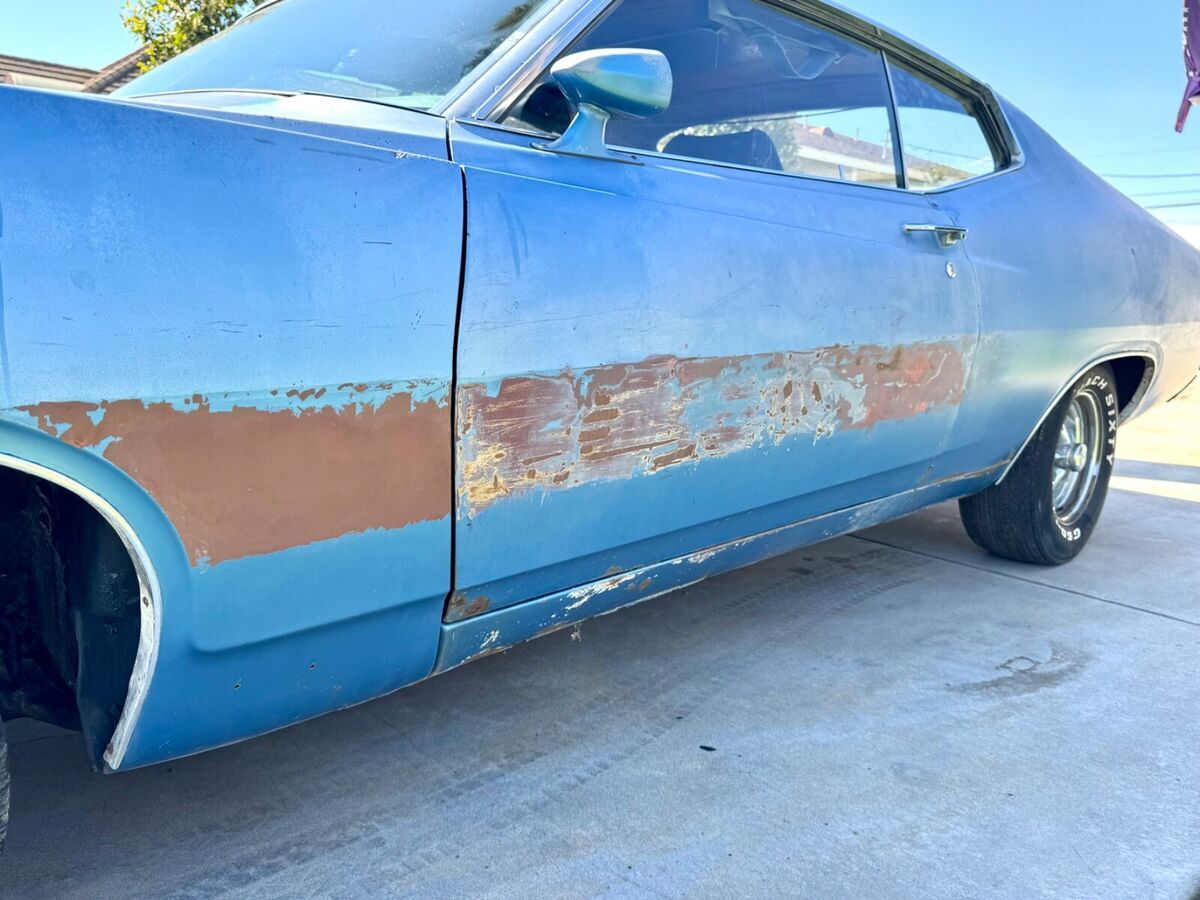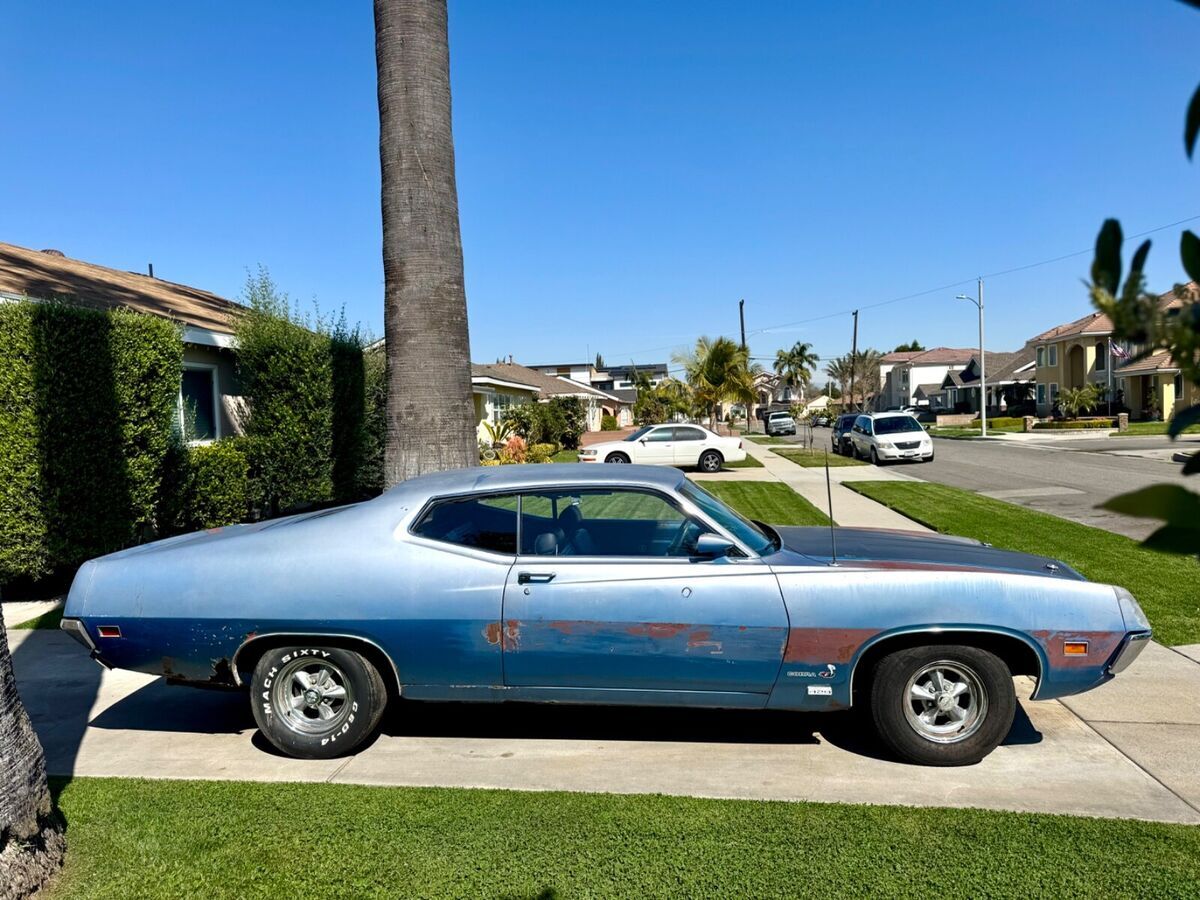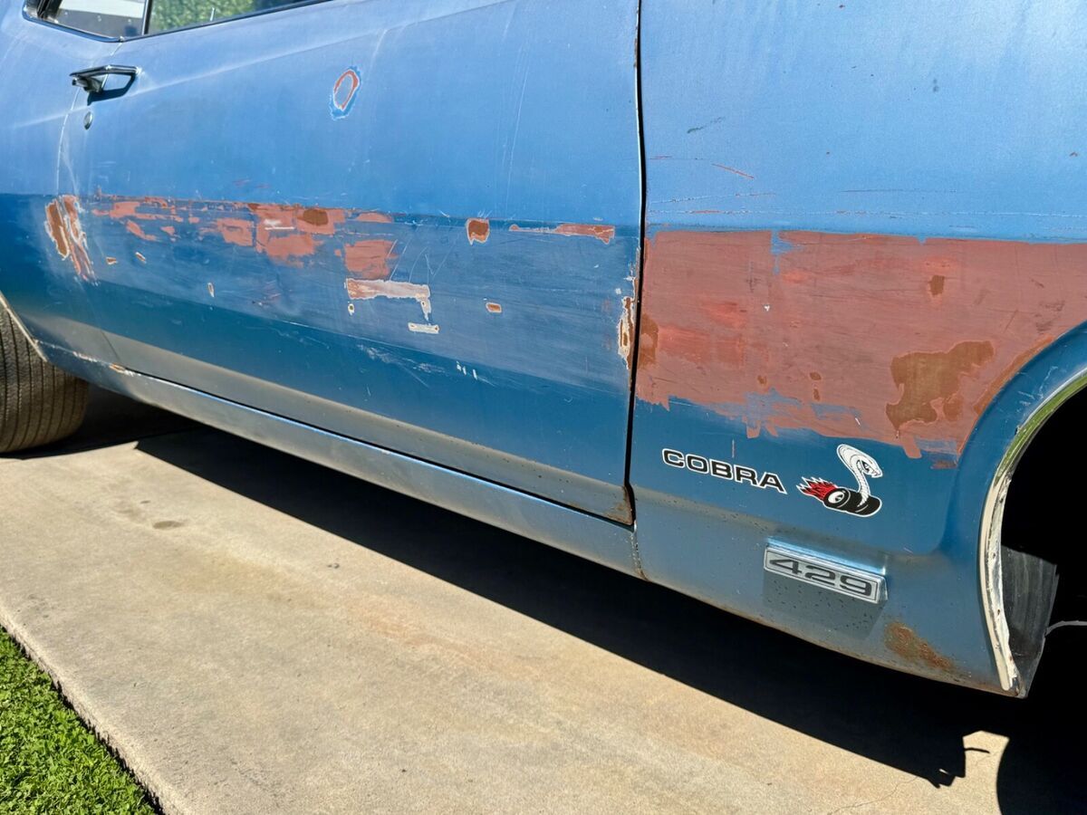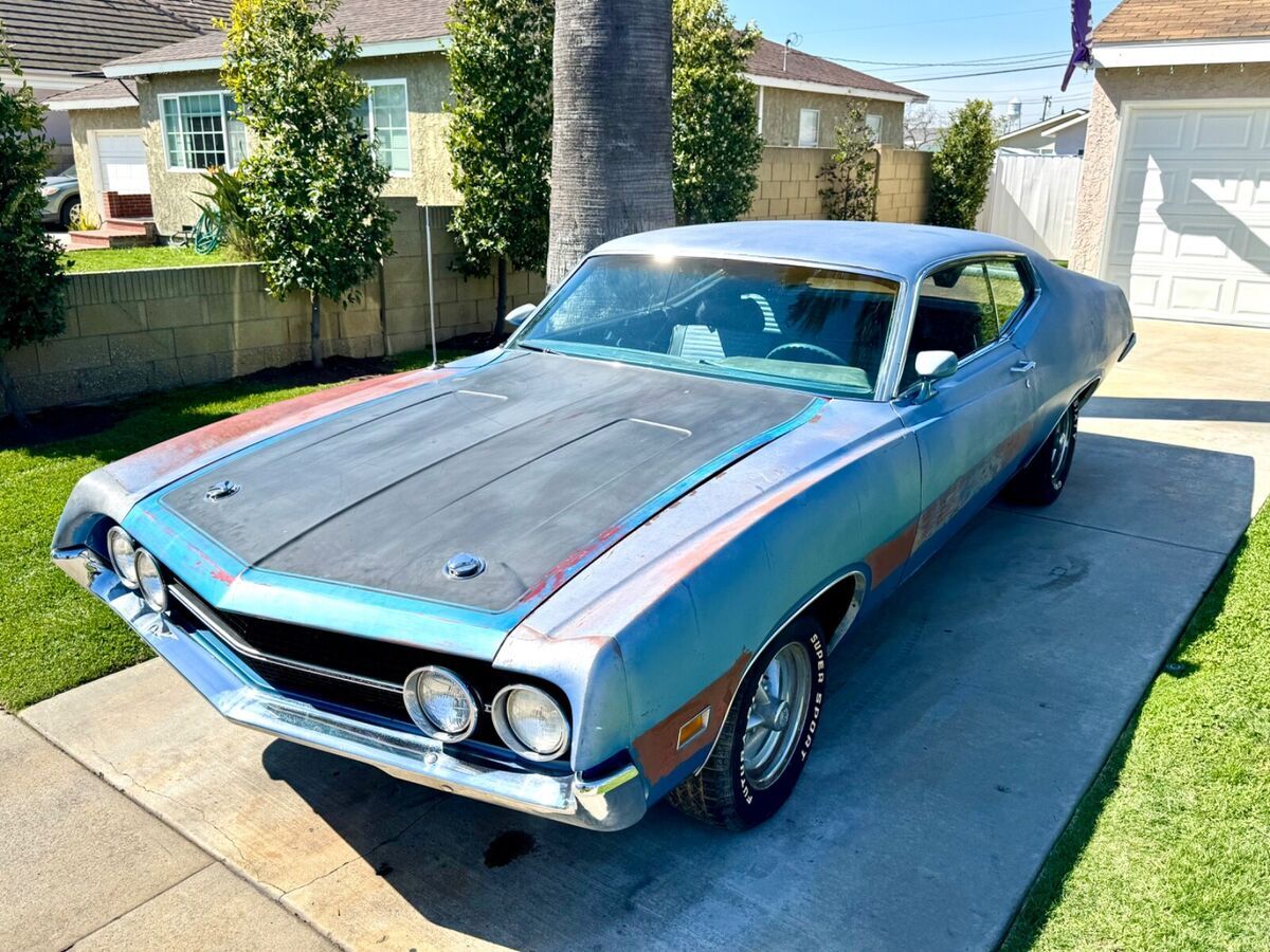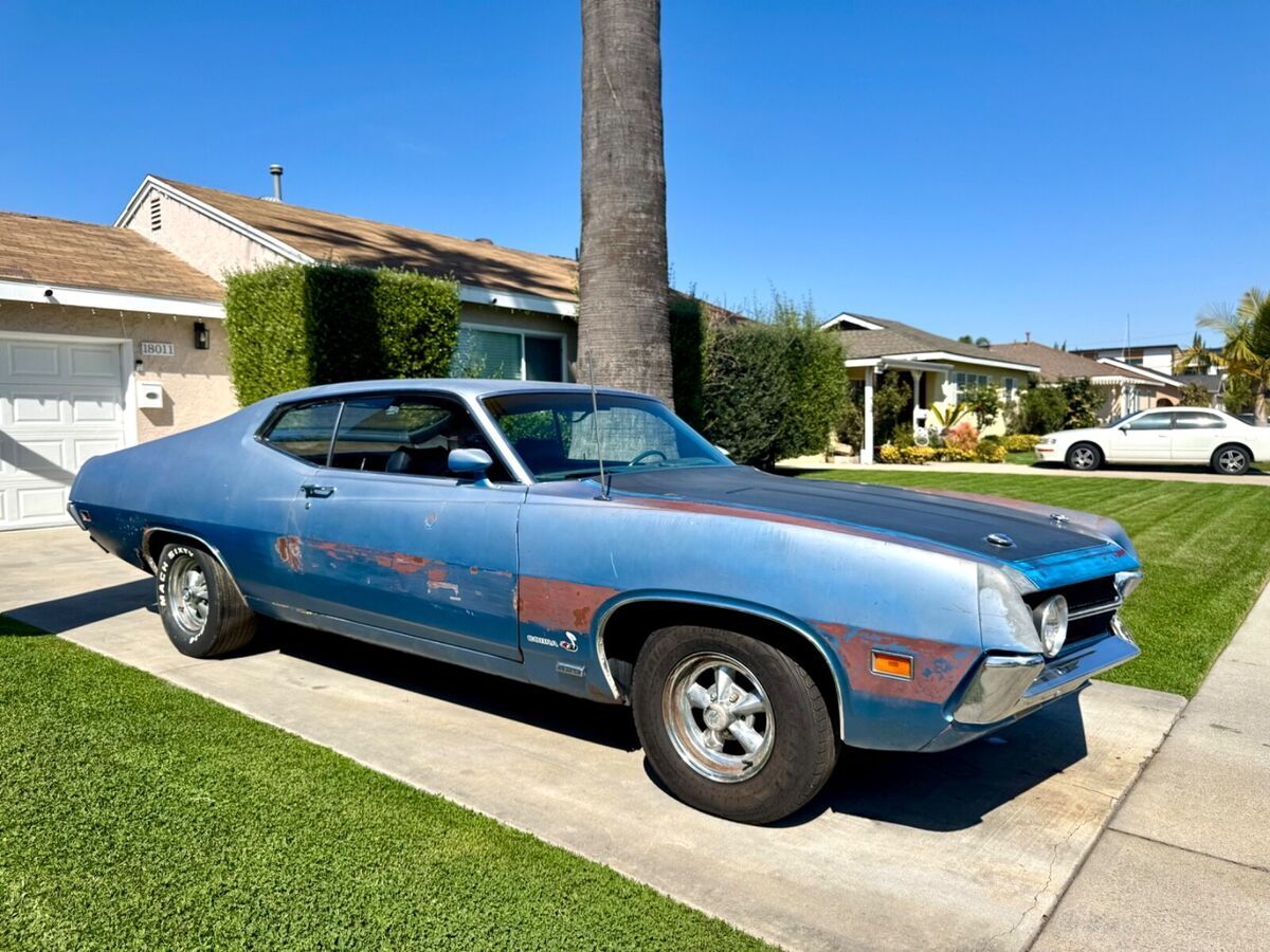 Up for auction is an original 1970 Ford Torino Cobra 429 that has been off the road since the 80'sFactory 429 Sportsroof N Code C6 Automatic ( 1 of 7,675 Cobras )Medium Blue Metallic With Blue Vinyl InteriorPower Disc Brakes - Power Steering - Magnum 500 Chrome WheelsThis is in my opinion the nicest color combos on the CobraWas sitting in a barn since the 80' when the second owner in 2010 brought it to AZ to let it sit another 15 years in his backyard. Never got around to restoring it as time played a factor. The Torino is complete and everything is in intact. Engine / transmision / Interior & trim. Original pans but the 2 front floors have few holes passenger side lower quarter. Other then that its straight what I can see.Does not run and rolls / steers. Matching Clear AZ title, Door & dash vin match & documented thru Marti reportExcellent canidate to restoreSold To The Highest Bidder At No ReserveEither Cash in person or wire transferCan help with any shipping arrangements, just askAny questions, Call me directly at (562) 688-5205Cobra located in Los Angeles, California