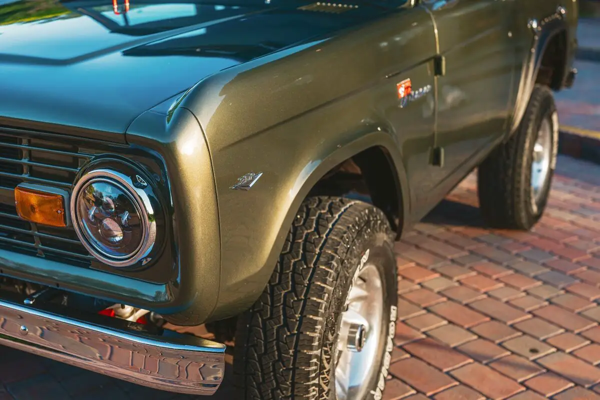 This gorgeous classic piece of Ford history! The classic Bronco is an American icon and this 1969 To-Tone Olive Green example makes for a super fun ride and a great investment for the future! - 302C.I. V8 Engine - 3-Speed Manual Transmissio, Upgraded Aluminum Radiator - Removable Hardtop - Aluminum WheelsFeaturing a 302cu V8, 4v carburetor, power steering, power brakes, ice cold air conditioning, hard top, custom interior, four wheel drive...he got it all. Undercarriage is just as beautiful as him topside. Finished in impeccable Dark Olive Green, he envy of any collection. The engine bay is highly detailed as he is throughout. Rewired, recovered, repainted...no rust ever body and he is nearly flawless. He runs and drives just as wonderful as he looks. Dont look any farther, this is the one!!! No expense spared restoration. You cant build a nicer one for the cost of purchasing this lovely Bronco. Take a close look at over 100 photos and watch and driving video and decide that this 69 Bronco should be YOURS.All New Air conditioning . All New Upgraded Cooling System New Radiator New Hoses New Water Pump New Thermostat Housing and Thermostat Dana 20 Transfer Case Dana Front Axle 9 Ford Rear End All New Stroppe Dual Exhaust Shox N The Hood Hydraulic Hood Lift System All New Power Steering New Pump New Steering Box New Hoses and Lines New Pulley New Belts New Steering Shaft and Joints New Tilt Steering Column with Column Shift All New Fuel System New Oversized 32 Gallon Fuel Tank New Stainless Steel Braided Fuel Lines New Fuel Sending Unit New Fittings New Fuel Pump New Fuel Filters All New Billet Aluminum Interior Package All New Bright Work New Chrome Door Handles (Inside and Out) New Chrome Mirrors New Chrome Bumpers (Front and Rear) New Emblems All New Locks and Keys New Door Locks and keys New Ignition Locks and Keys New Liftgate Lock, Handle and Keys New Glove Box Latch, Lock and Keys All New Weatherstripping and Glass Seals All New Window Felts, Run Channels, and Belt Mouldings New Windshiel, Removable Hard Top