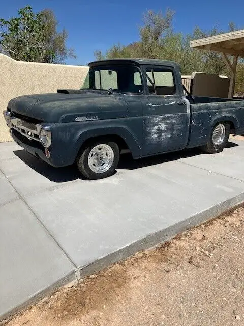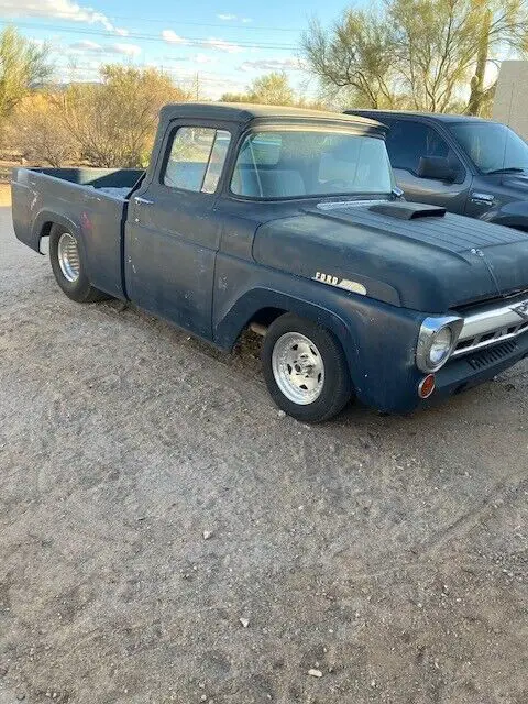1957 F100 short box. Just done 351 windsor . Early 70s block ( 72 ). 64cc heads, roller comp cam.750 holley DP. C6 trans manual valve body. Narrowed 9".All wheel disc. 16 gal. tank. Holley Blue pump.