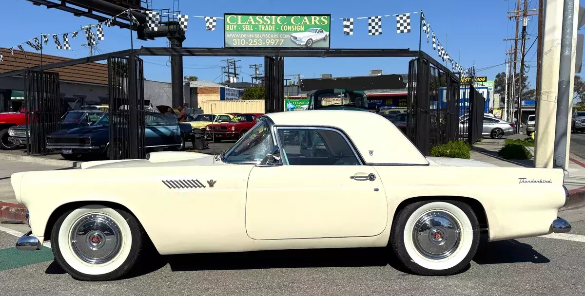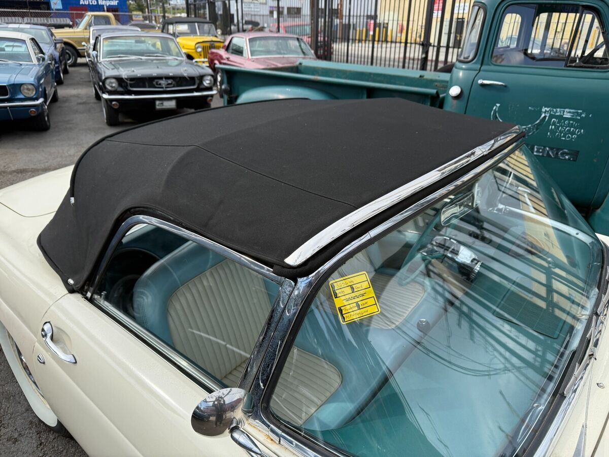 1955 Ford Thunderbird Convertible, 292CID/198HP V8, Automatic Transmission, Power Steering, Power Windows, Power Seat, Factory Hard Top and fully restored, soft top. Excellent running condition, gauges work. Older paint has some checking and imperfections that don't show up well in pics. Fender skirts are missing some attachment hardware but are included in the sale. Priced to sell. Frames are solid and I have posted a pic of the worst rust I can find which appear to be limited to the drivers side floor. Own a true automotive American icon at an affordable price. Reliable head turner as is or bring her to the next level. We have a clean California title in hand and current CA registration. VIN-P5FH195644.
