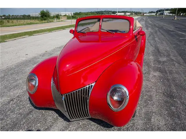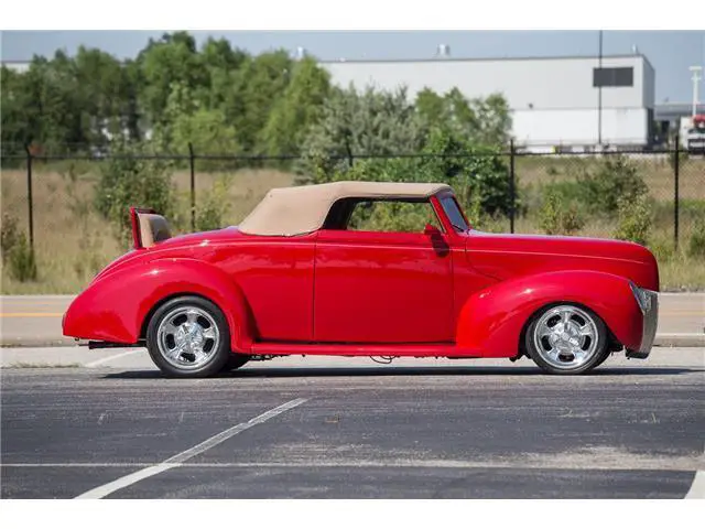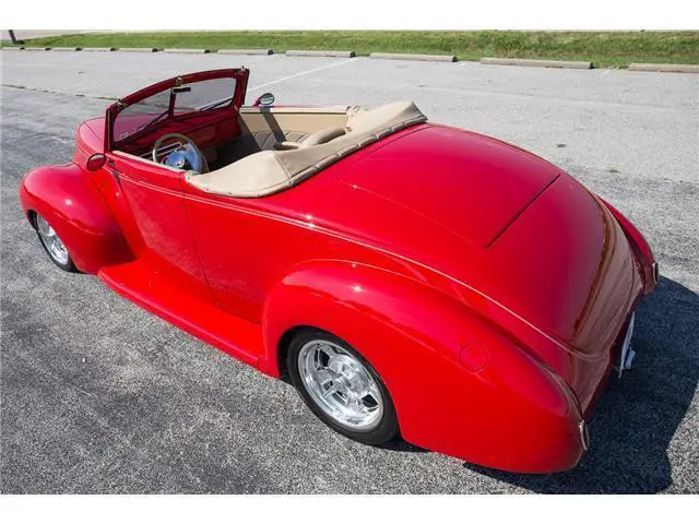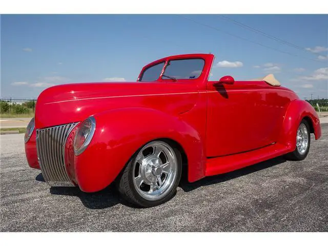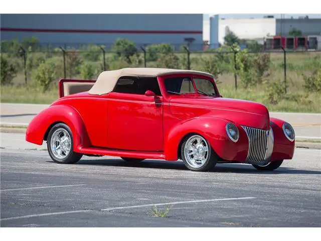 This 1939 Restomod Ford Cabriolet Convertible has an all Steel Body and Fenders, sits on a modern TCI Chassis, powered by a 2000 Ford 5.8 liter Fuel Injected V8, pushing a 4 Speed Automatic overdrive transmission with a Ford 9" Rear end w/ 3.50:1 gear Ratio. This Cabriolet is built to show quality and has been custom painted down to the last detail including its pin striping. The handles have been shaved and electronic door poppers have been added. This cabriolet has all the luxury with a new canvas Convertible Top, Air Conditioning, AM/FM/CD Stereo, Electronic Gear Selector, Power Windows, Mustang II Power rack & pinion steering w/power disc brakes. The interior is finished with Leather Seats, Door Panels and Center Console, Tilt Wheel, Electronic Dash and Vintage Air Conditioning. This cabriolet sits on a set of 17" custom polished Halibrand Wheels w/ Toyo Radial Tires, This is a rare opportunity to own an all Steel '39 Ford Cabriolet Convertible with a Rumble Seat, it also comes with a leather Boot Cover. This 39 ford is ready today to just drive or to add it to any collection.
