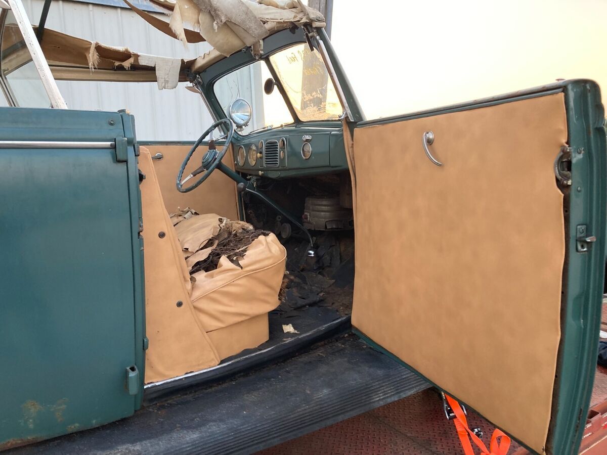 Clean original Phaeton with one repaint. Clean straight body with minor floor rust in rear foot area. Looks to be untouched other than interior panel and seat refinish. Has the second window and wing windows. Engine compartment looks to be untouched original. Very low miles, very clean top assembly with mint wood that is sturdy. This will be a awesome project. Located SE Iowa and will store for several months to winning bidder.