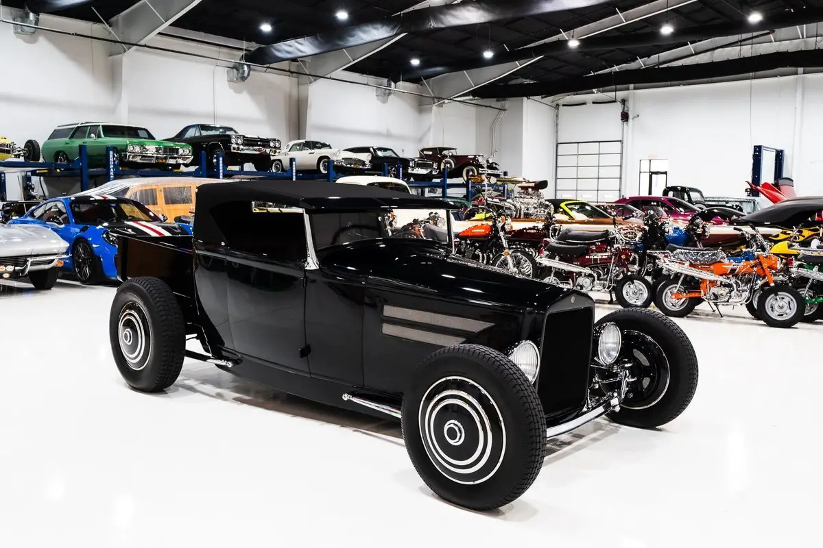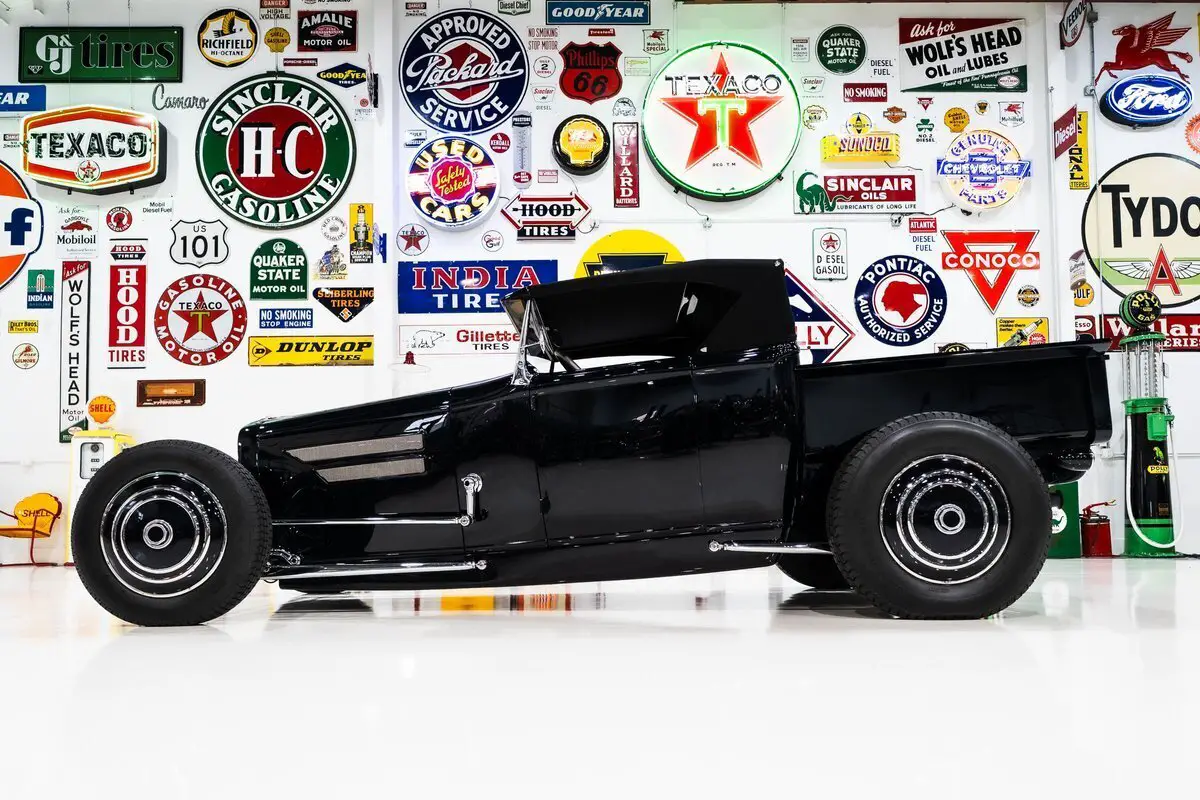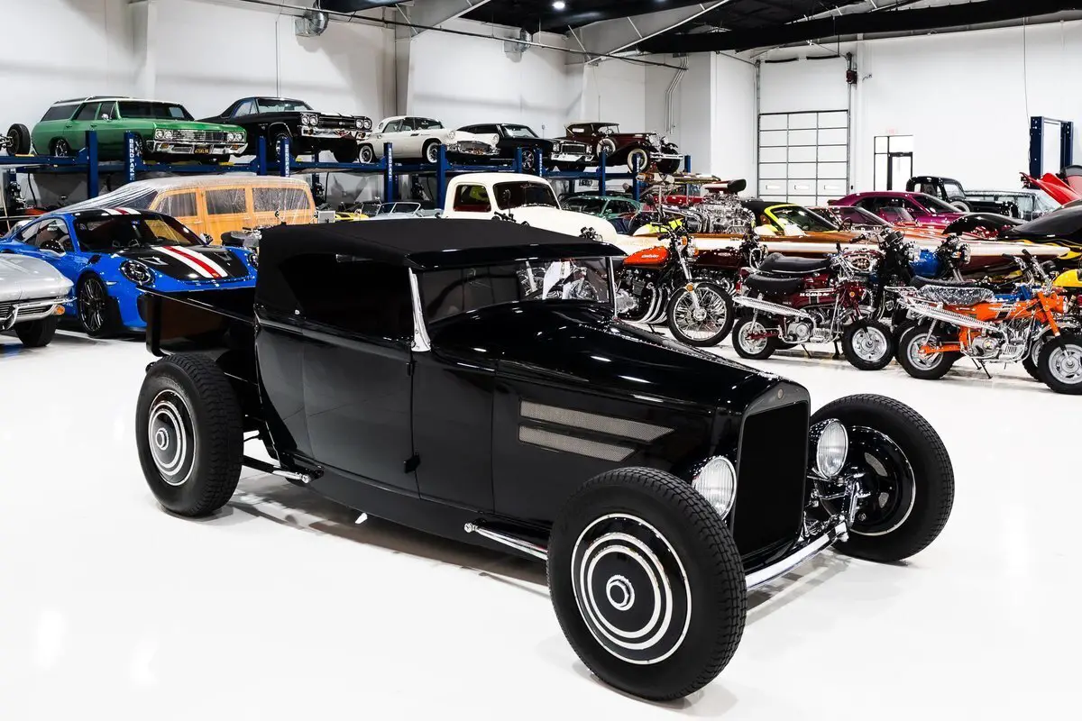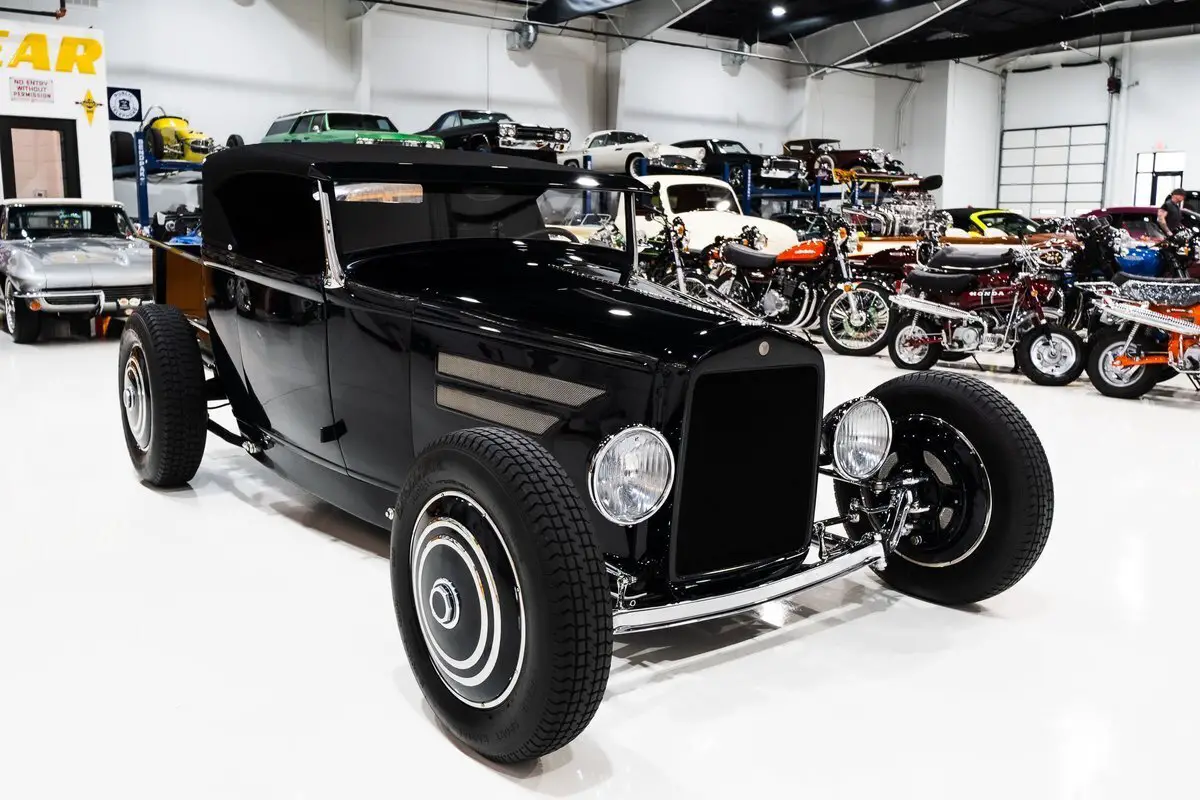 Photos, and video coming soon. Chassis Hand built frame 2x4" rectangle tubing. 120 wall with 8" rear kick up, powder coated Custom front cross member all the chassis fabrication jig/tig welded Front Suspension '32 Ford heavy axle dropped by Industrial Chassis, Phoenix, AZ Durant single leaf front spring Custom cantilever shocks using '40 arms adapted to concealed Bilstein shocks '39 Ford spindles, arms removed '39 Ford wishbones split and modified Rear Suspension Custom cantilever shocks using '46 arms adapted to concealed Bilstein shocks '40 Ford transvers front spring used on rear '39 Ford wishbones split and modified '59 Ford Ranchero 9" rear-end shortened 1-1/2", 3.25 Posi rear end Dutchman 28 spline axles Front Brakes '40 Lincoln backing plates rotated 180 degrees placing wheel cylinder on bottom '40 Lincoln drum brakes, M-T Products Lindsay, CA '68 Cougar dual-reservoir master cylinder Rear Brakes '59 Ford station wagon large diameter brakes Body Reproduction 1931 Ford extended cab RPU Custom bed, tailgate, rear frame covers by Kimmins Custom Fabrication '31 Ford school bus grille shell, chopped 2-1/2" Honeycomb grill insert 4 piece hood with stainless steel screen inserts and polished hinge Windshield post shortened 2" and laid back 10 degrees Curved windshield frame made by owner '29 commercial headlights painted body color, attached to grill shell '37 Ford taillights painted body color Cowl band removed Metalwork with help from Loren Richards, Colin Kimmins and Garth Bowie Front Wheels and Tires 16 x 4-1/2 early Ford steel wheels 5.00 x 16" Excelsior by Coker Rear Wheels and Tires 16" × 5-1/2 early steel wheels by Wheelsmith Owner modified stainless wheel disc, adding ribs, polished and painted Paint PPG base coat clear coat '40 Packard dark blue Bill Knight painted engine, transmission, wheel covers Mike McAndrew body, bed, hood, rear end, top bows Interior Interior by Glenn Kramer, Hot Rod Interiors Glendale, AZ Hartz cloth top by Glenn Kramer, Owner designed/built bows, adding steel visor attached to bows Reproduction '32 Ford dash, modified adding glove box doors NOS GM diesel truck gauge panel Fabricated the steering wheel from "H" beam NASCAR connecting rods Steering linkage embedded in kick panel Pyramid rubber carpet inlayed in custom floor panels Cowl steering using a German steering box Drivetrain 327cid 300HP small block Chev machine work by K&K, Prescott, AZ Crane cam, Stewart water pump, ProTronix ignition, Holley 4 bbl carb. High performance steel Chev heads Edelbrock intake manifold smoothed and painted Ram horn 2-1/2" exhaust manifold smoothed and ceramic coated Transmission 350 Turbo hydro, case is detailed and painted Shift kit Genie shifter Drive shaft, Inland Empire Driveline The project took over 8 years to complete with help from several professional friends/builders. Comments overheard at a Good-Guys event "This little truck has more tricks than a room full of Magicians". We welcome trade-ins