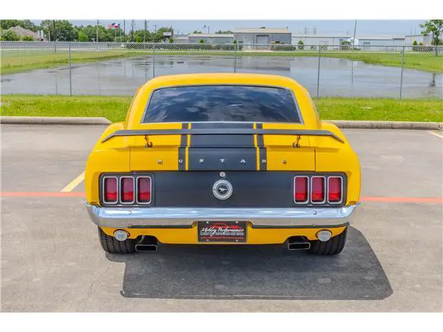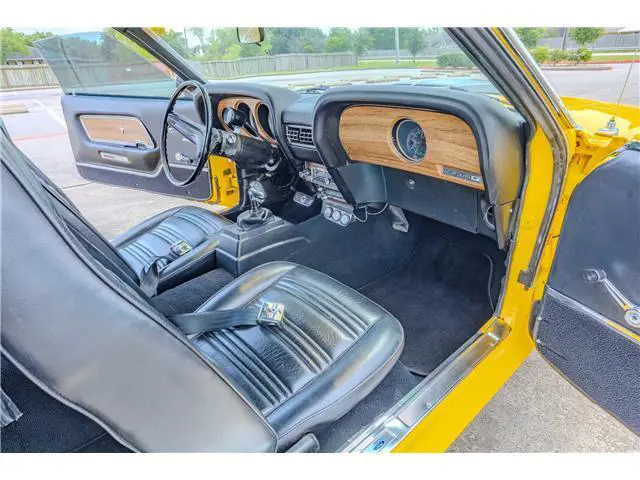 Vehicle Original VIN : 0F02F1611311970 FORD MUSTANG FASTBACK VIN 0F02F161131ENGINEFord 351 Cleveland V8TRANSMISSIONHughes Performance 3-speed automatic EXTERIOR PAINTYellow Base Coat Clear CoatINTERIOR COLORBlack MAKEFordMODELMustangBODY STYLEFastbackHIGHLIGHTS833 Miles Since BuildFord 351 Cleveland V8MSD Atomic fuel injection unit and MSD ignition systemEdelbrock intake manifoldMarch Performance pulley setupAluminum radiator with electric fanChrome HO alternatorHughes Performance 3-speed automatic transmission with a B&M shifterHigh-back bucket seat interior & fold down rear seatCold Air conditioningPower steering4-wheel power disc brakesCurrie 9 inch rear endDual exhaust with Flow Master mufflersRetro-style AM/FM pushbutton stereo with updated speakersMagnum 500-style 15-inch wheels235/60 front and 255/60 rear BF Goodrich Radial T/A tires