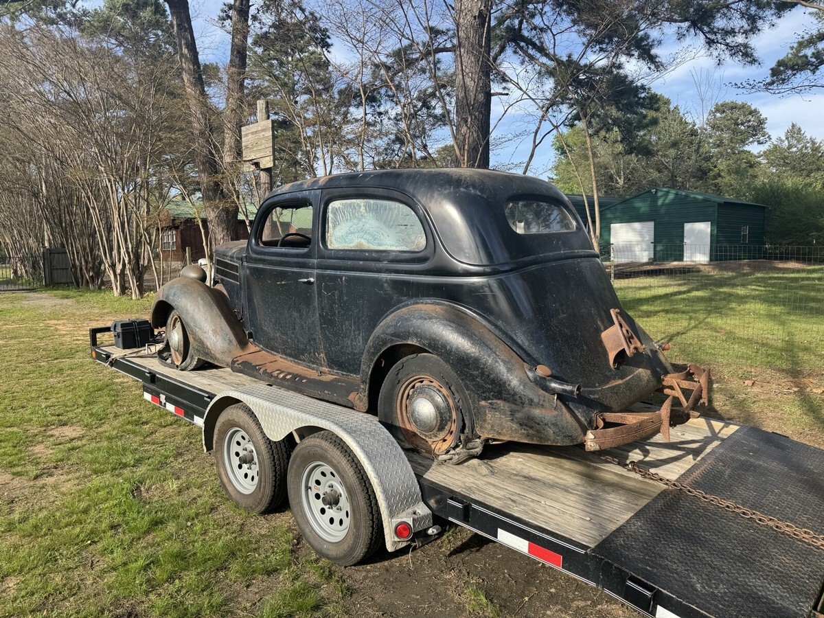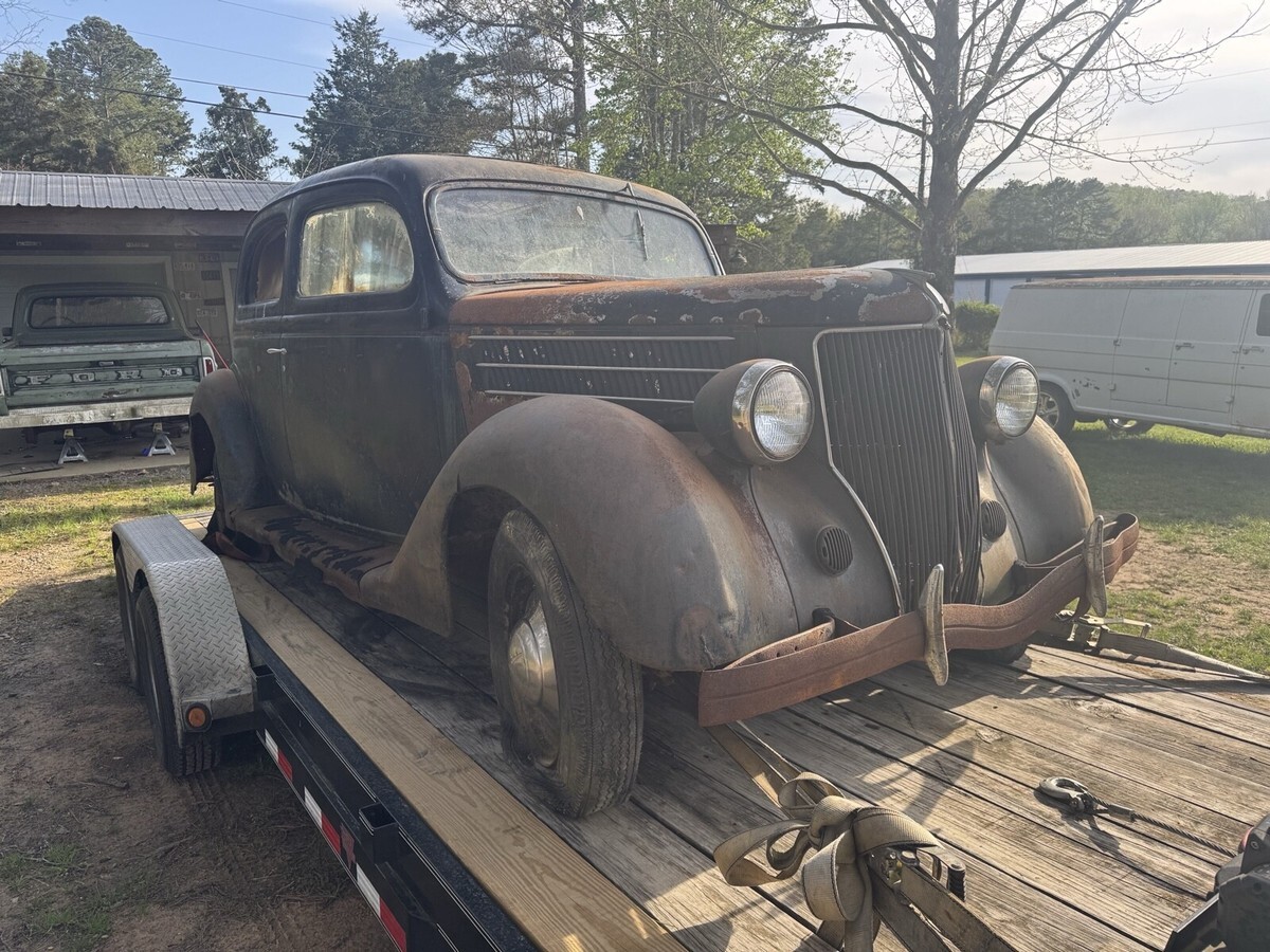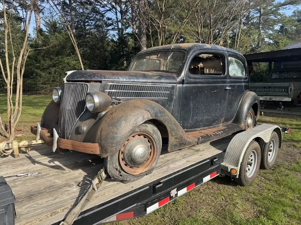 This 1936 Ford Model 68 is an original car that needs work and is not regularly driven. The car has a black color and no title, sold with bill of sale.